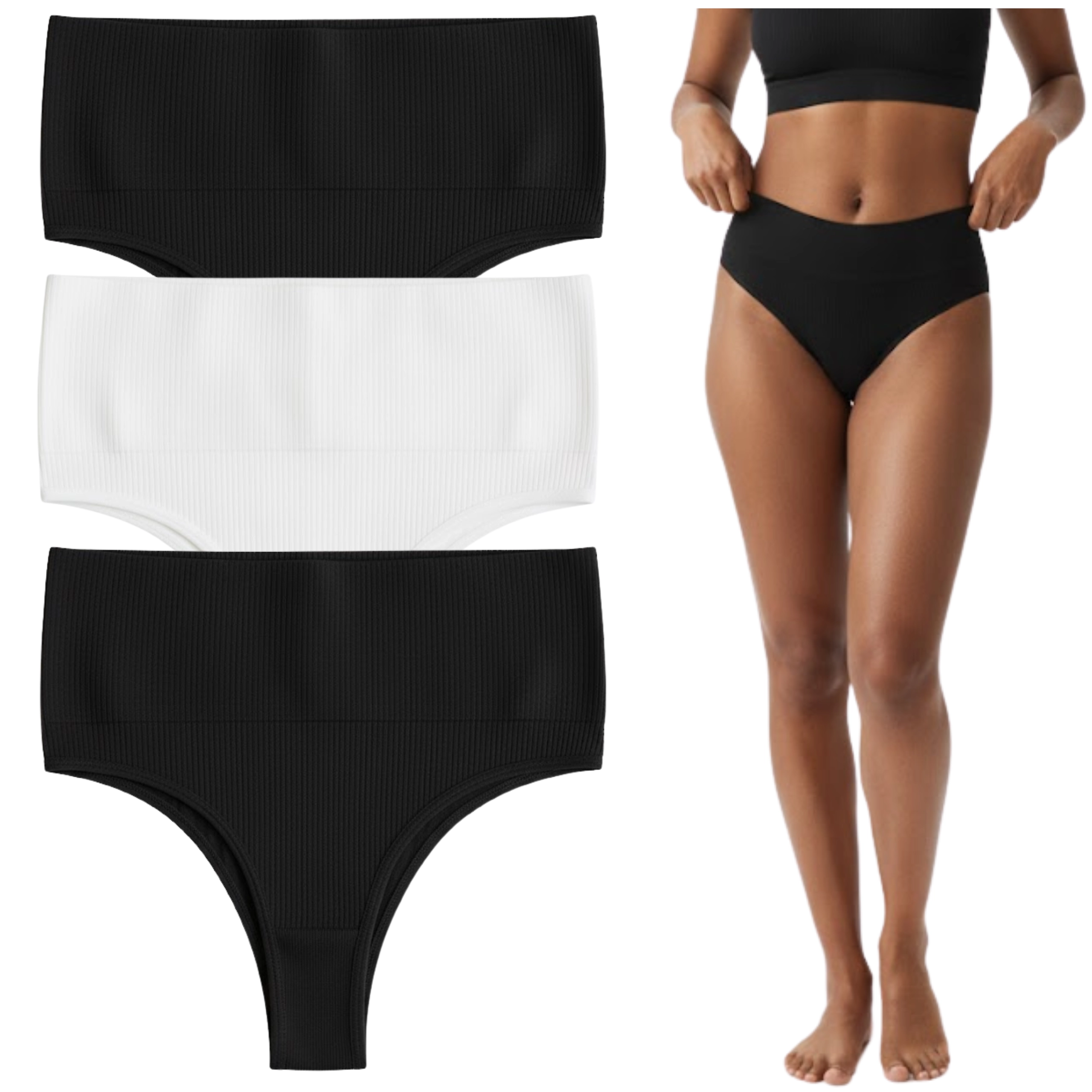 Brazyliany Majtki Damskie 3-Pak Wysoki Stan Modelujące Prążek