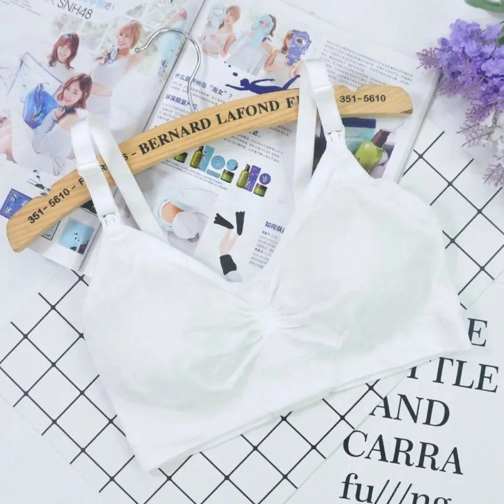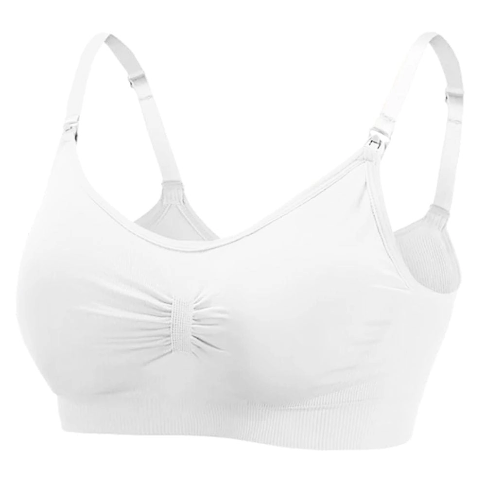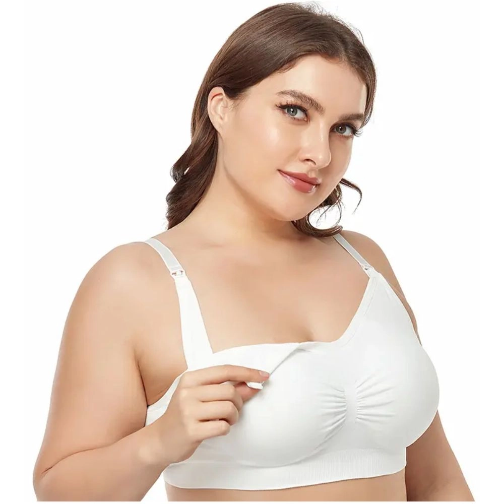 Biały miękki biustonosz ciążowy z odpinanymi miseczkami, wygodny i praktyczny do karmienia piersią.