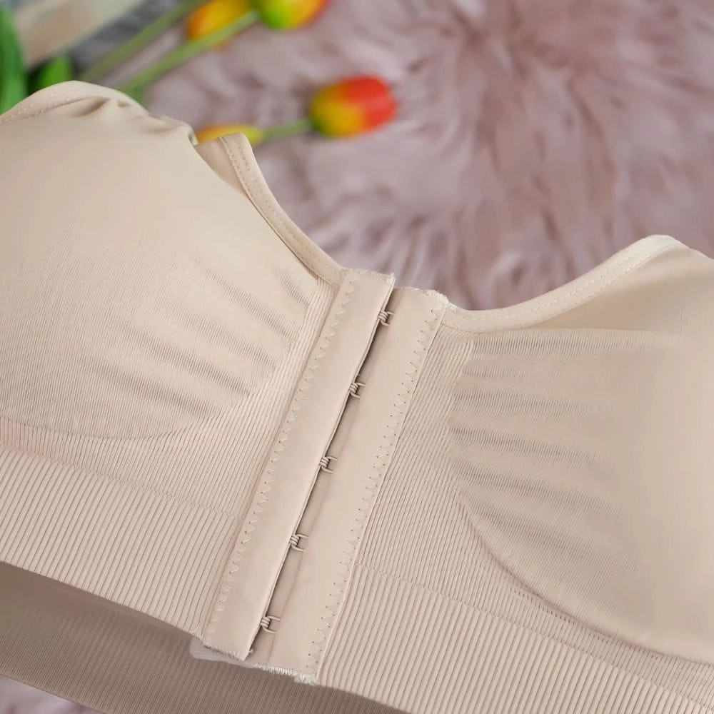 Elegancki i praktyczny biustonosz damski w kolorze czarnym, zapinany z przodu, bez fiszbin, zaprojektowany z myślą o codziennym komforcie. Model wykonany z elastycznego materiału, który dopasowuje się do kształtu ciała, zapewniając idealne wsparcie oraz subtelne modelowanie.