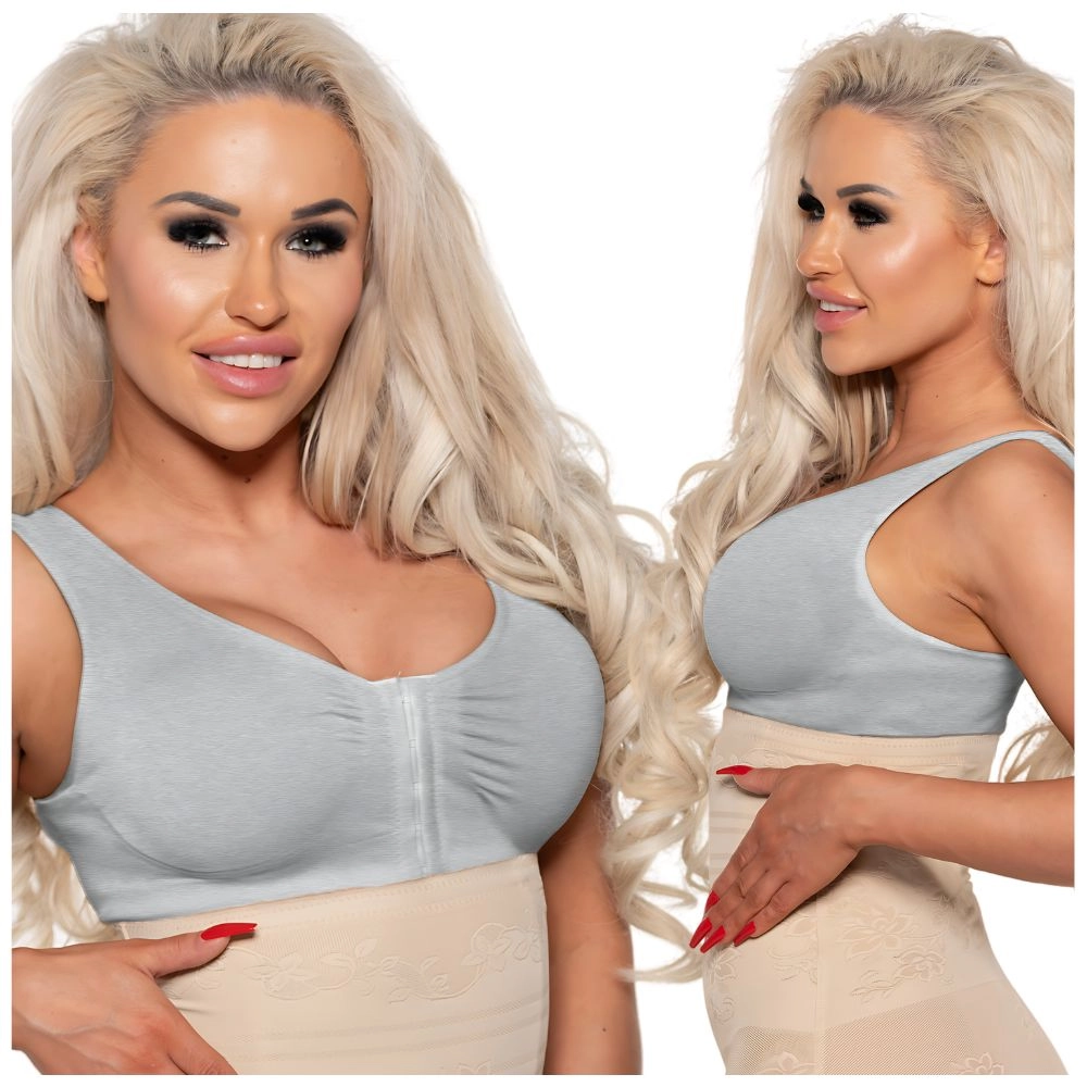 Biustonosz damski zapinany z przodu bez fiszbin szary