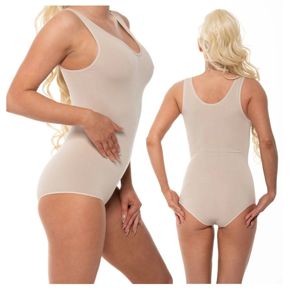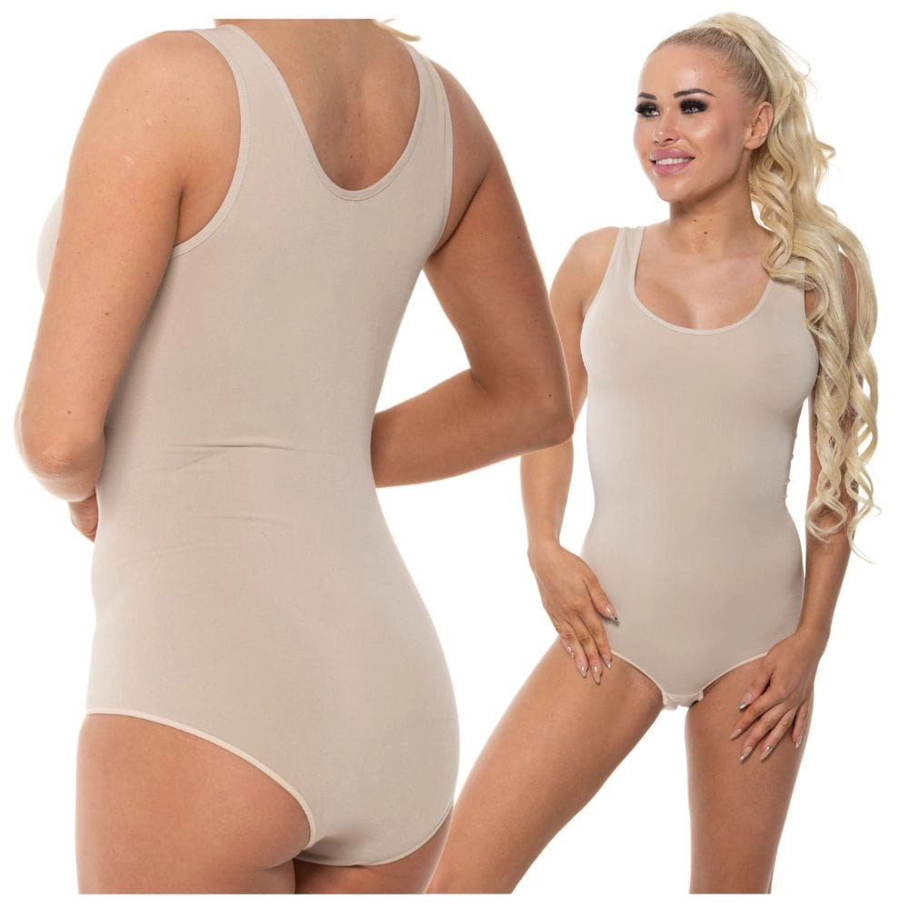 Body bambusowe damskie beżowe z okrągłym dekoltem