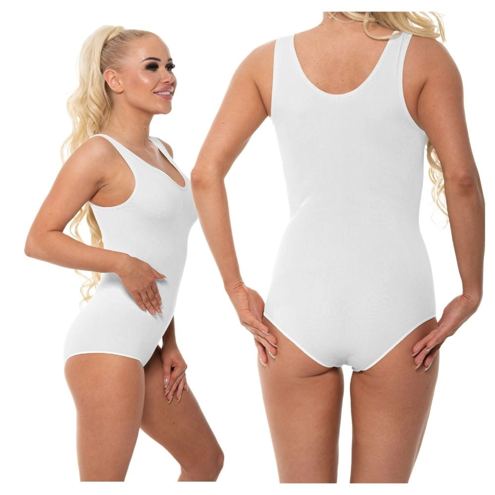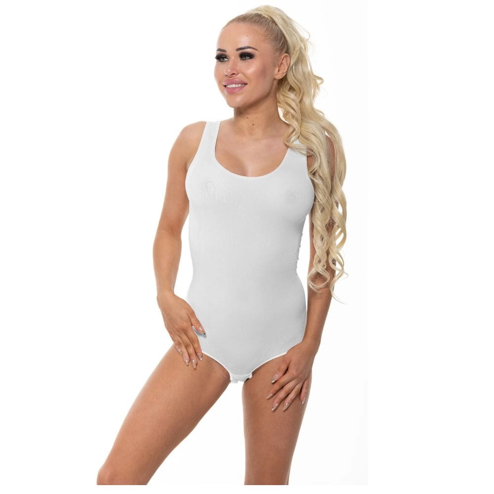 Body bambusowe damskie białe z okrągłym dekoltem