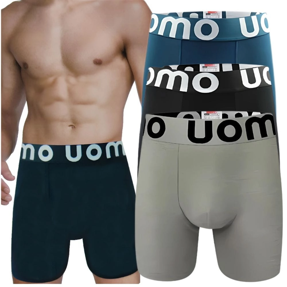 Zestaw 4 bokserek męskich Uomo z długą nogawką i elastyczną gumą. Komfortowy krój i uniwersalny styl idealny na każdy dzień.