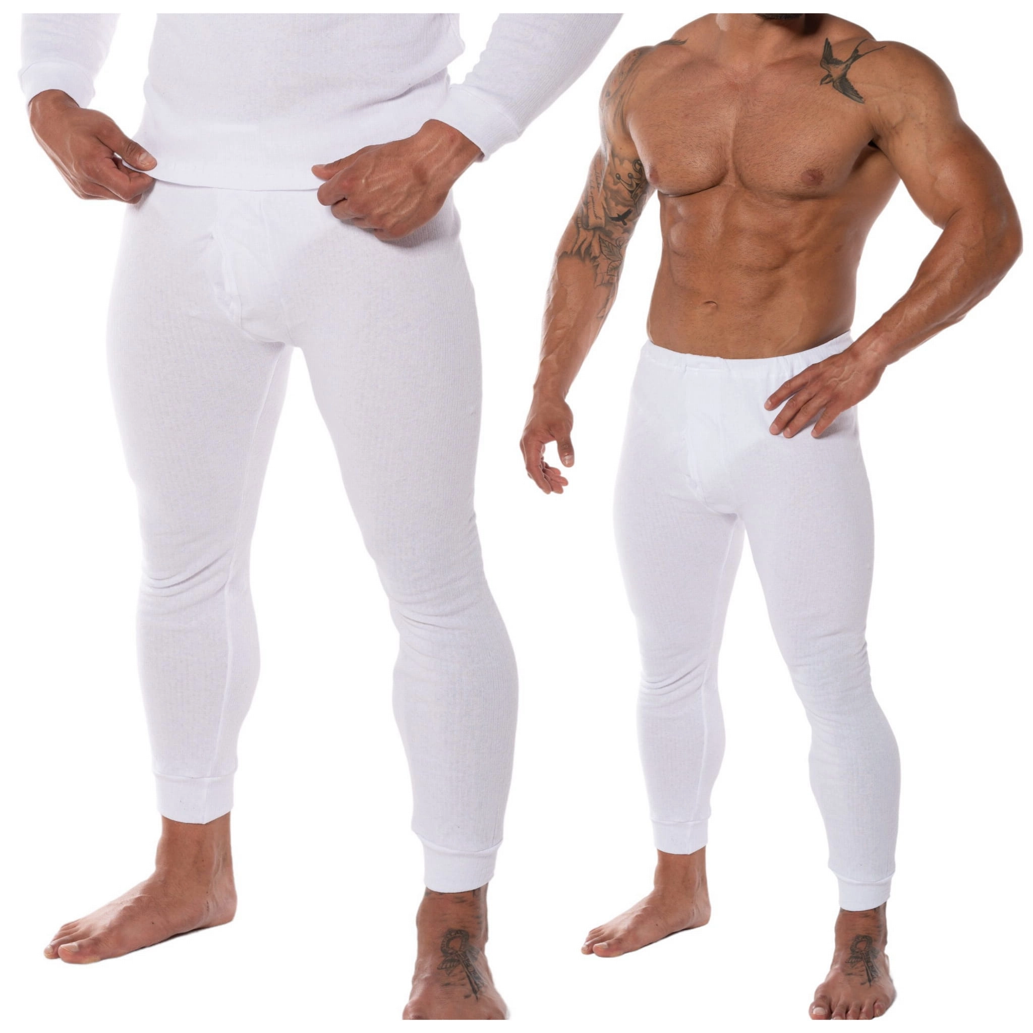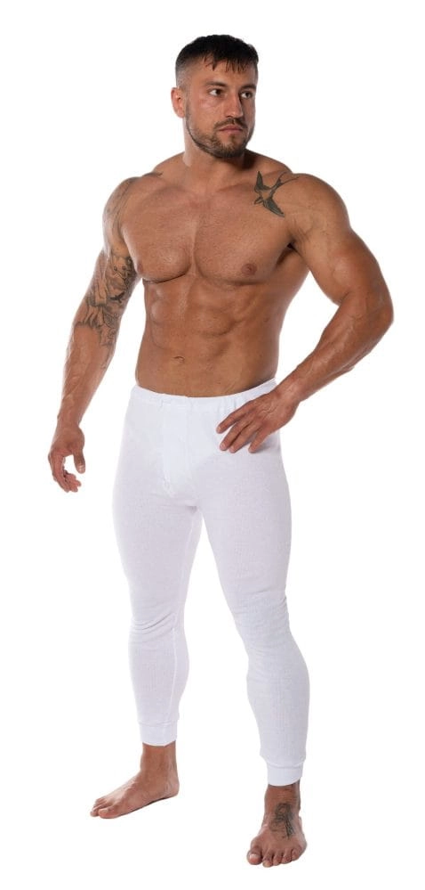 Kalesony Bawełniane Męskie Białe z Meszkiem Ocieplane