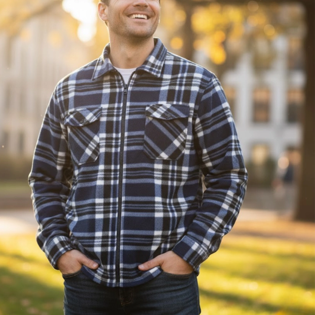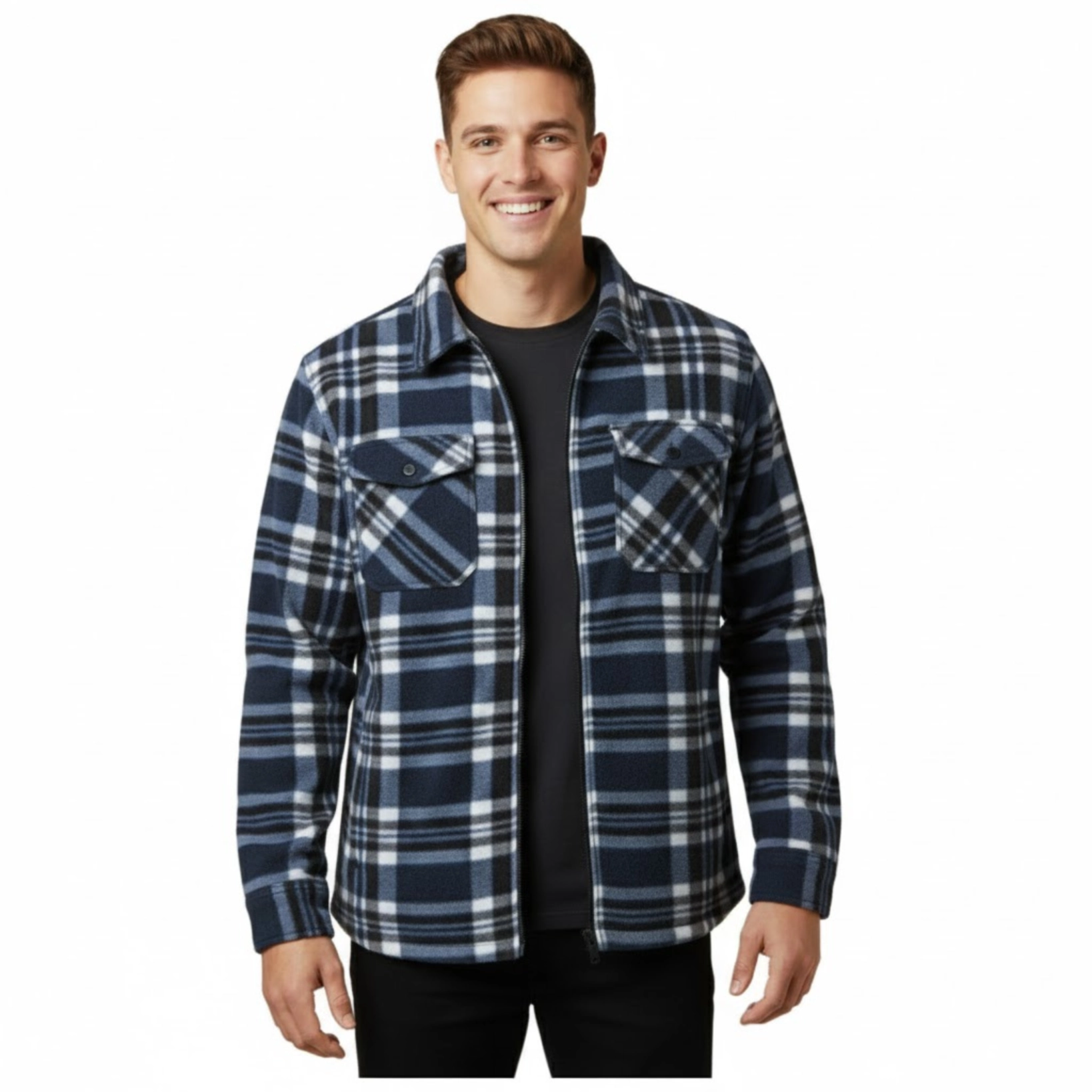 Stylowa i funkcjonalna koszula polarowa męska w kratę z praktycznym zamkiem i kieszeniami. Idealna na chłodne dni – lekka, wygodna i uniwersalna.