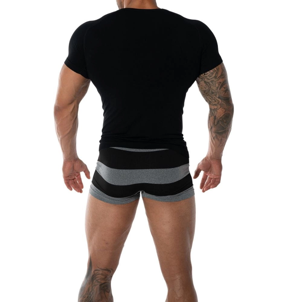 Klasyczna czarna koszulka męska T-shirt z bawełny, dopasowana i wygodna, idealna na co dzień i do treningu.