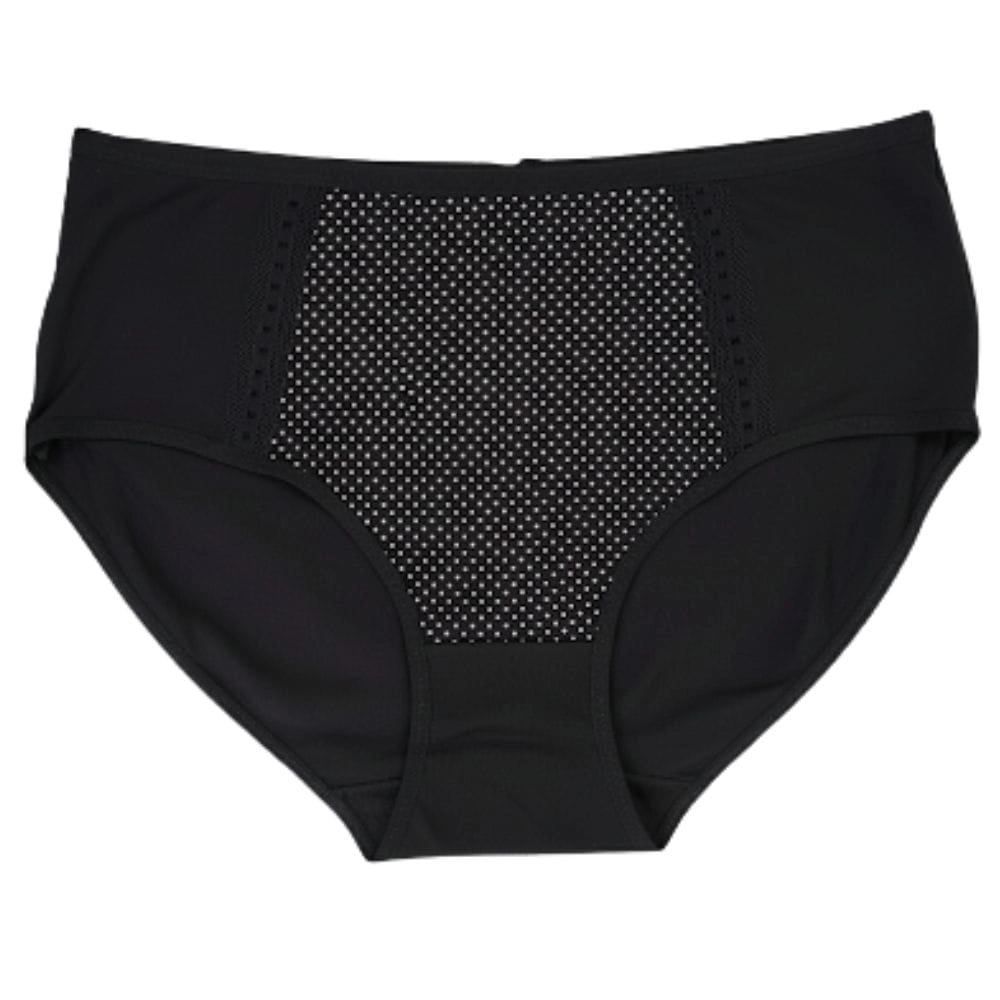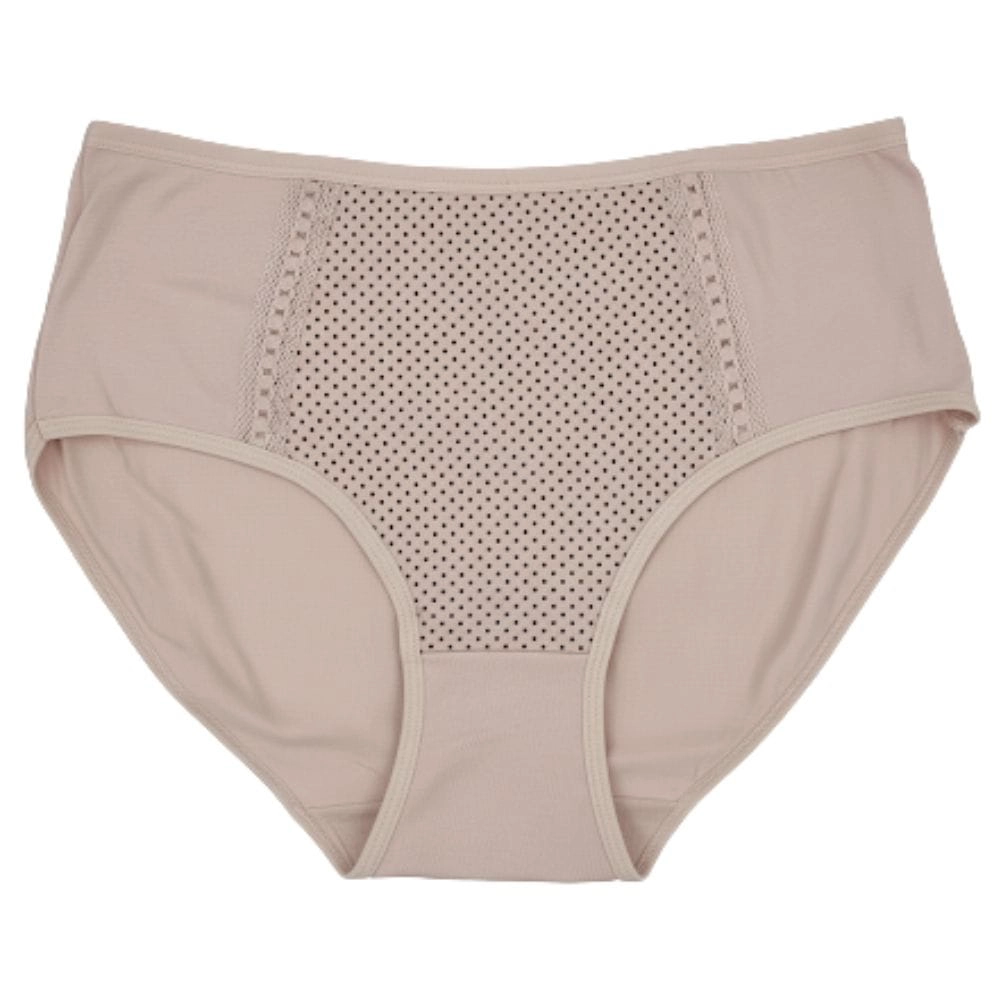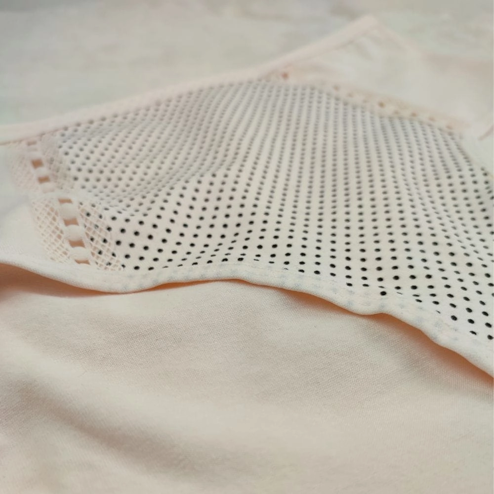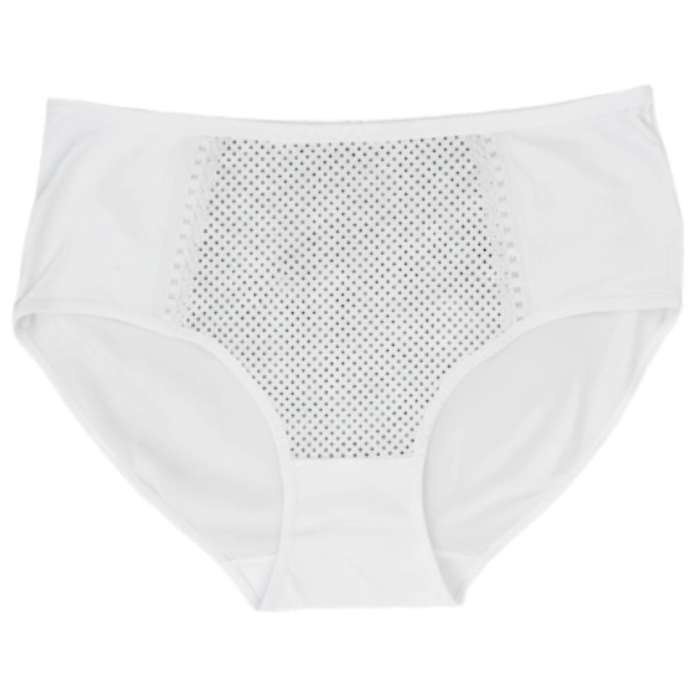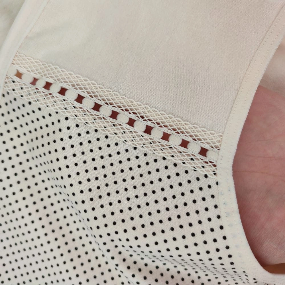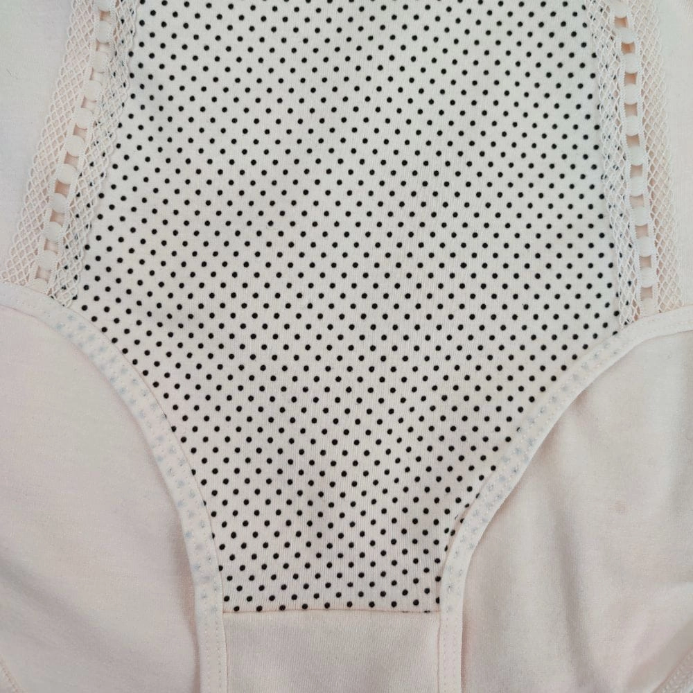 Na uwagę zasługuje ozdobny panel przedni z drobnymi kropeczkami, który nadaje majtkom wyjątkowej lekkości i kobiecego charakteru. Ażurowe wstawki oraz koronkowa lamówka dodają całości elegancji, a jednocześnie subtelnie podkreślają sylwetkę. Z kolei ozdobne przeszycia i perforacje optycznie wysmuklają brzuch, dzięki czemu bielizna prezentuje się stylowo i nowocześnie.