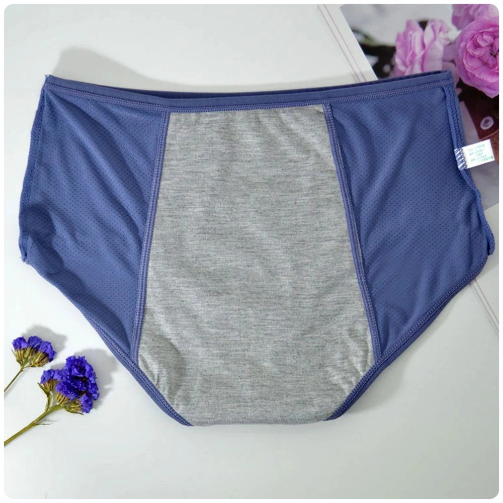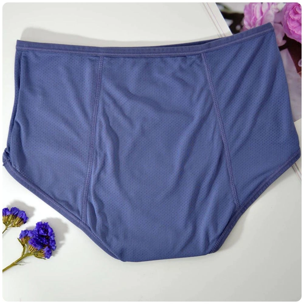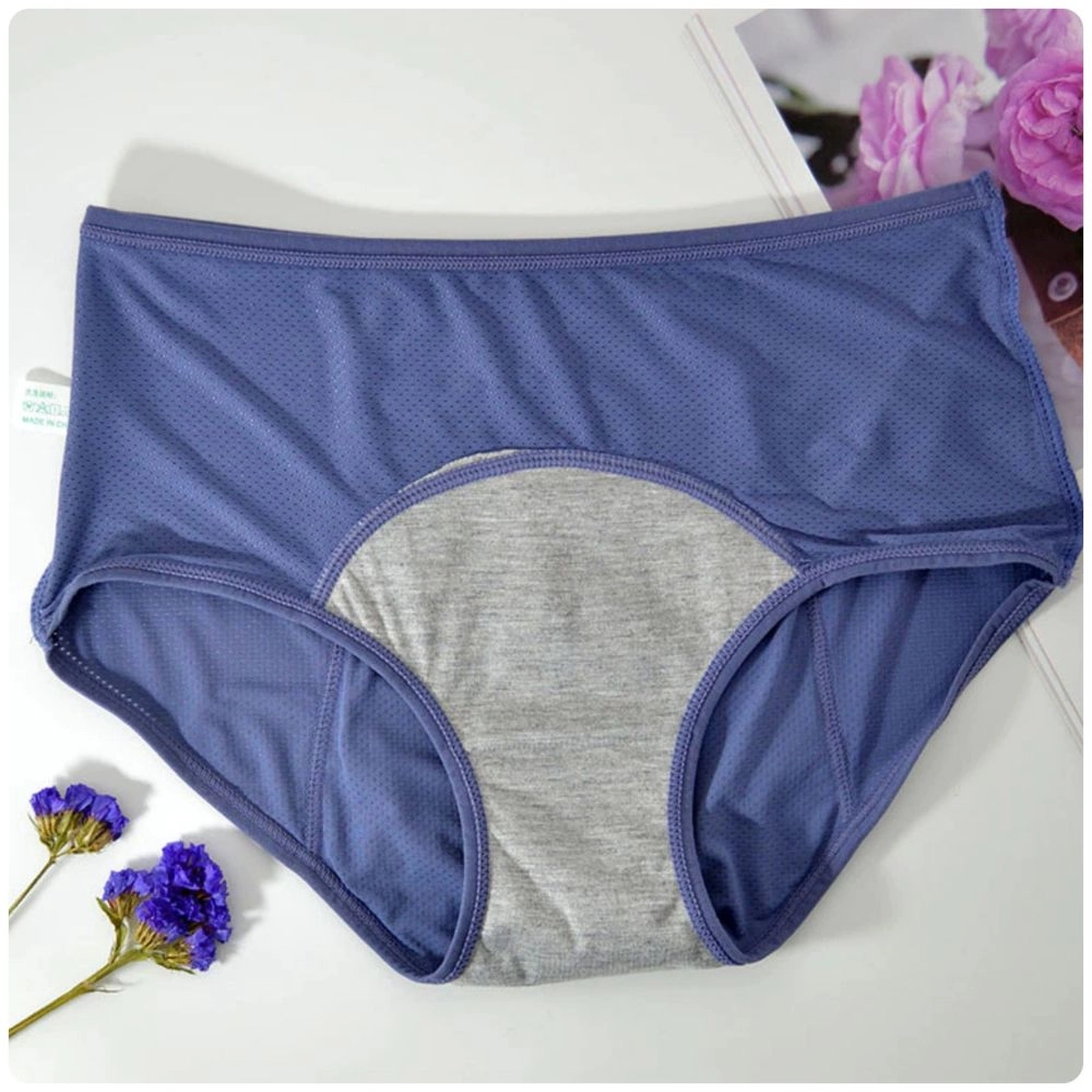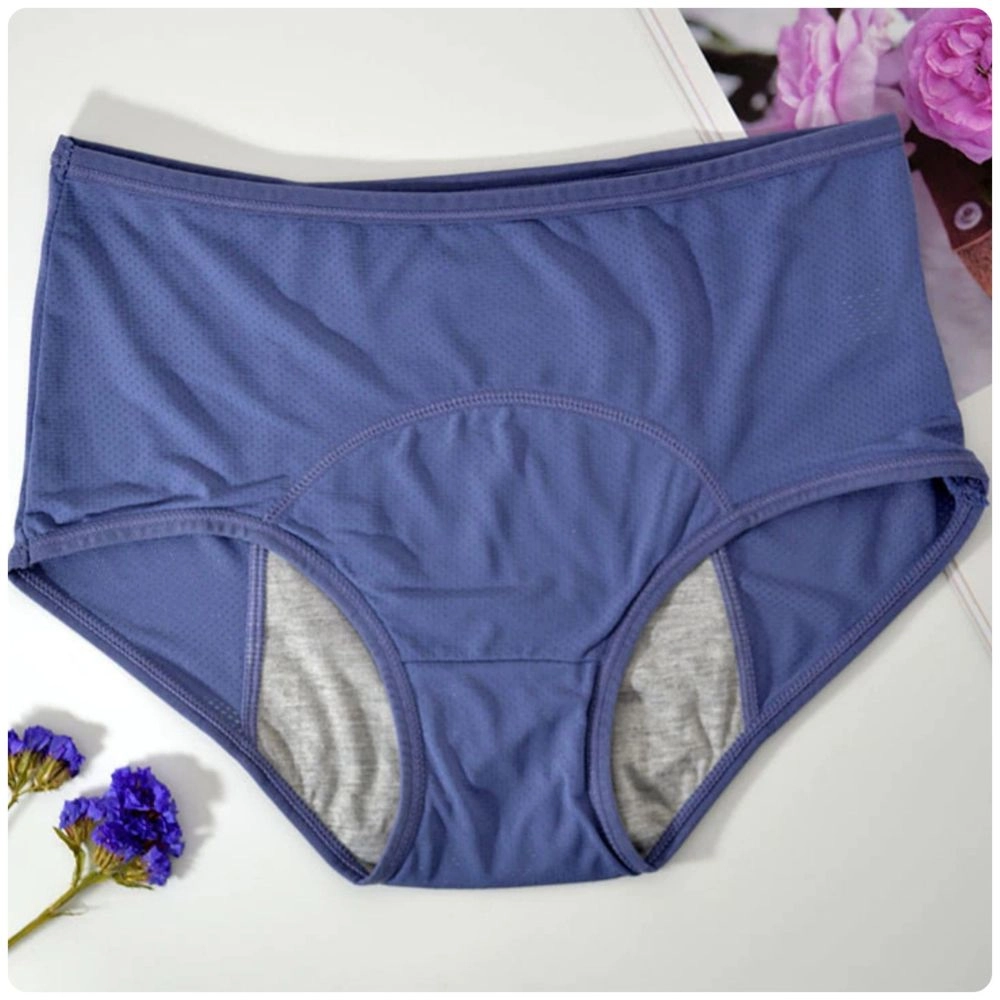 Granatowe majtki menstruacyjne – wielorazowe, oddychające i wyjątkowo chłonne, zapewniające komfort i ochronę przez cały dzień.