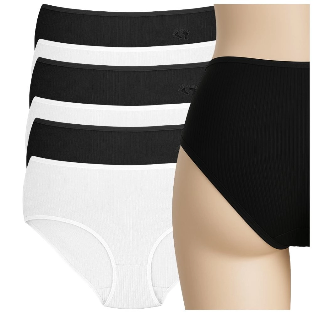 Prążkowane figi damskie z wysokim stanem wykonane z delikatnej, przewiewnej bawełny. Zestaw 6 sztuk idealny do codziennego użytku – komfort i styl w jednym.