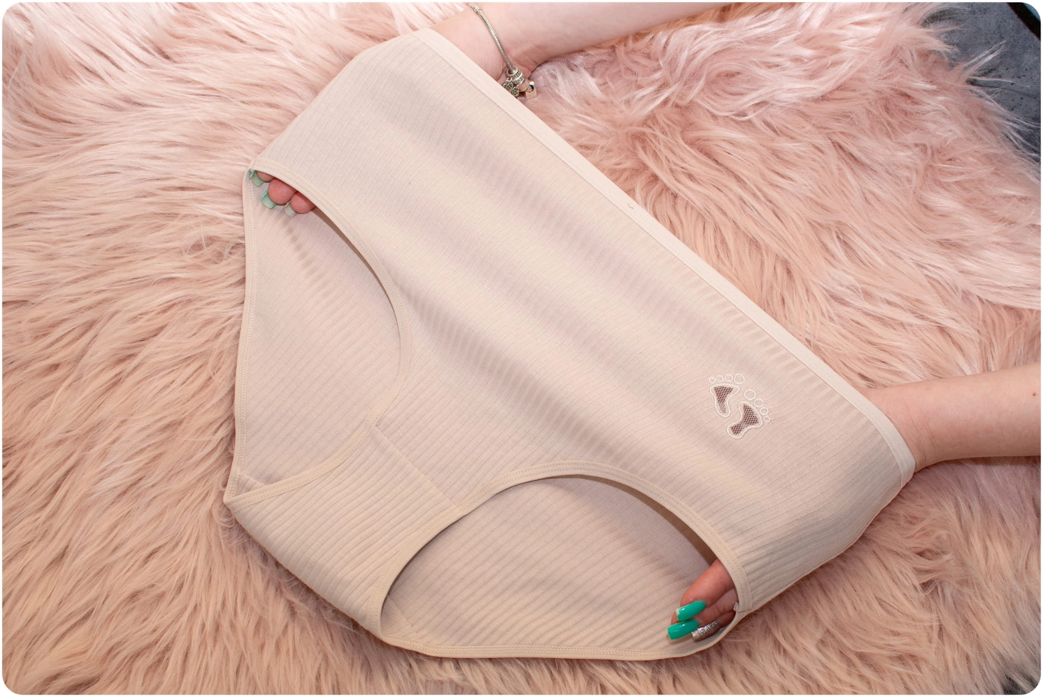 Prążkowana faktura materiału nadaje bieliźnie eleganckiego wyglądu, a jednocześnie zapewnia elastyczność i trwałość. Dyskretny haft ze stópkami to przyjemny detal, który dodaje charakteru. Figi doskonale układają się na sylwetce, nie krępując ruchów, dzięki czemu sprawdzą się w każdej stylizacji.