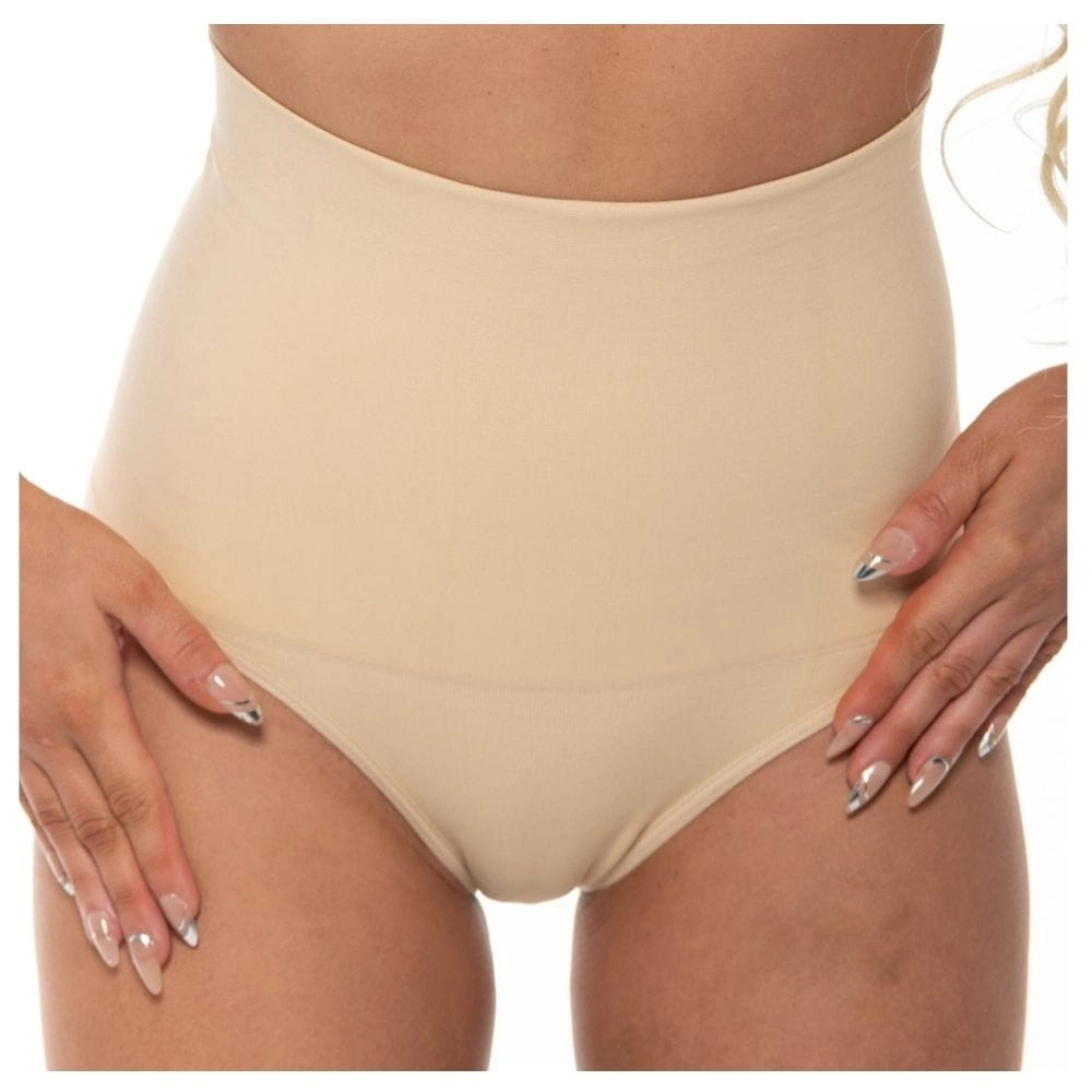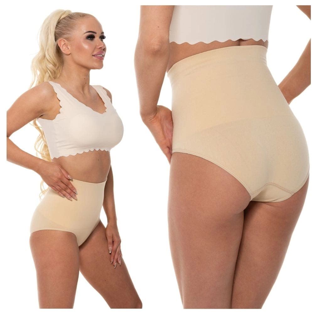 Majtki wyszczuplające z wysokim stanem skutecznie modelują brzuch i boczki. Miękki materiał i bezszwowe wykończenie zapewniają komfort i elegancki wygląd.