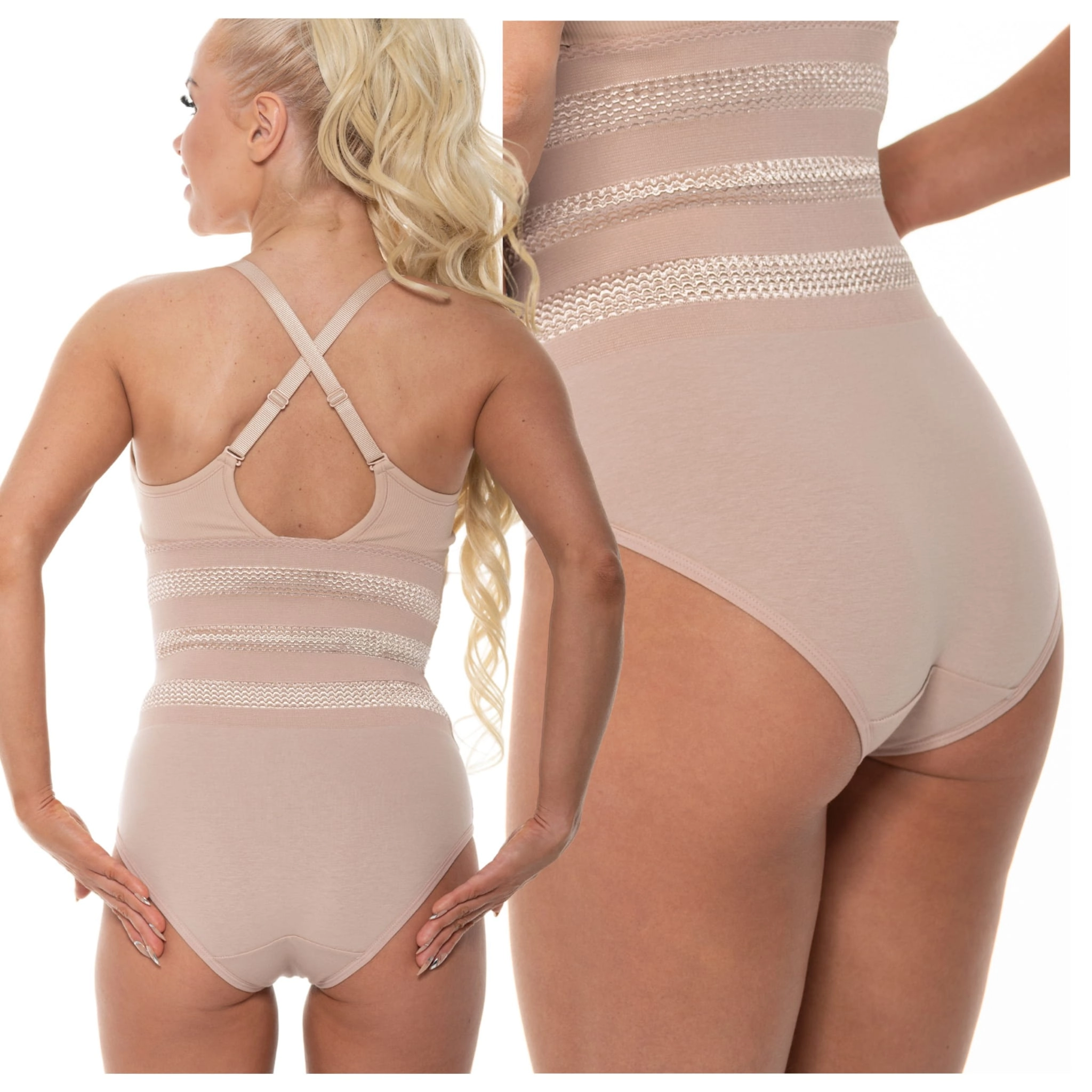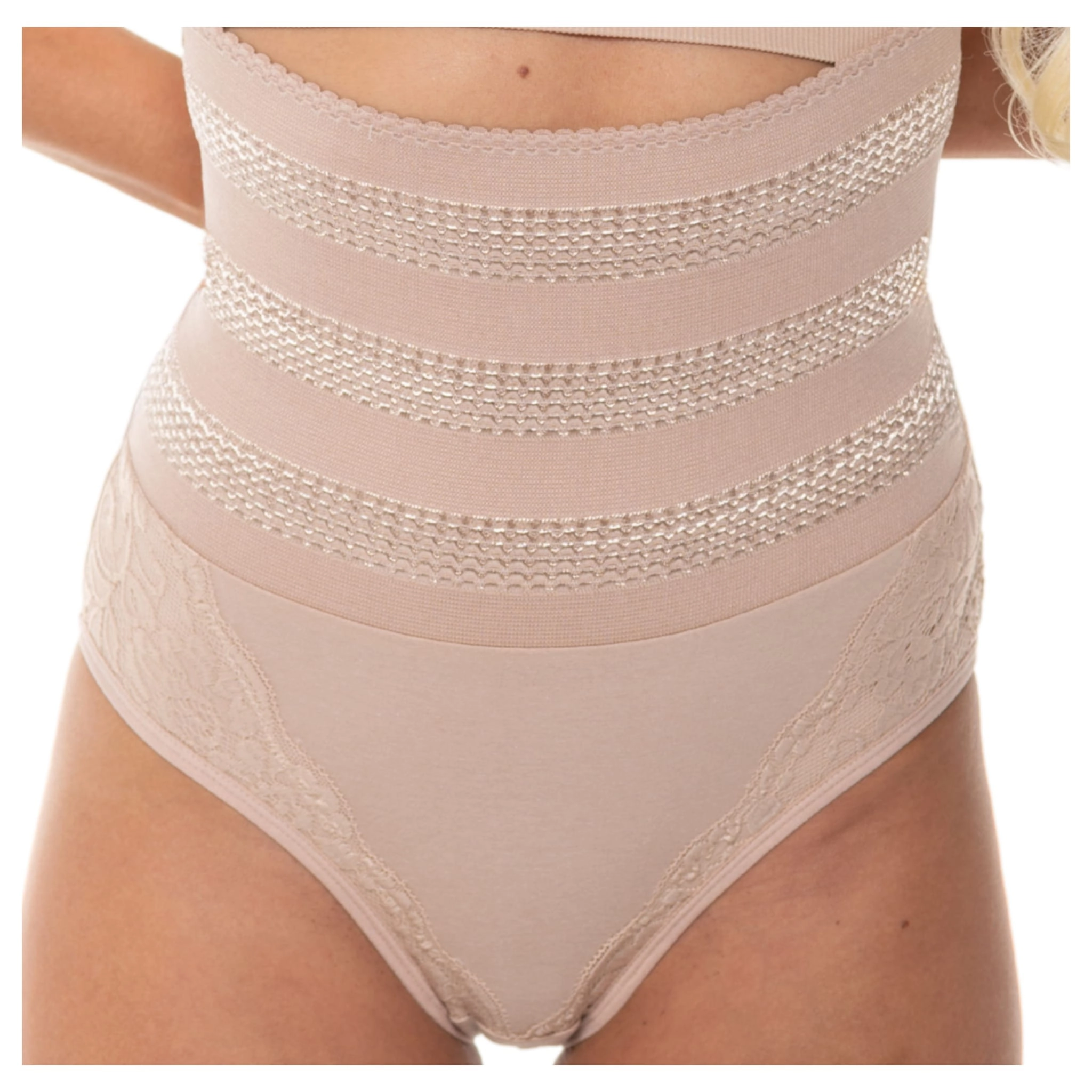 Majtki wyszczuplające brzuch z wysokim stanem i subtelną koronką to idealne połączenie komfortu i modelującej skuteczności. Wzmocniona struktura w górnej części zapewnia maksymalne wysmuklenie.