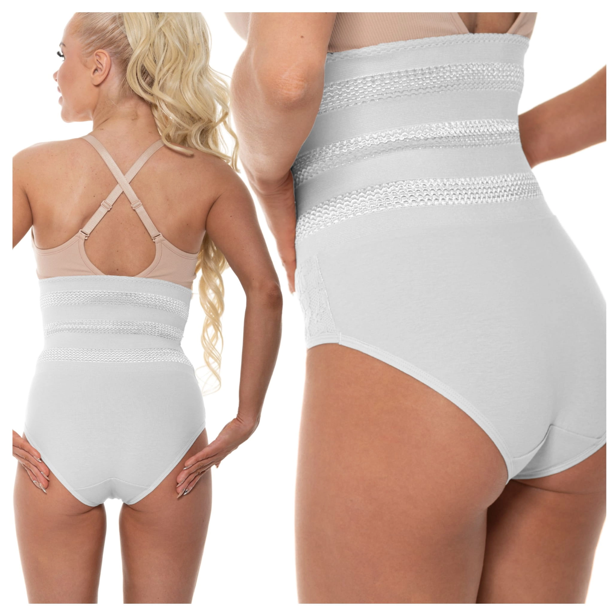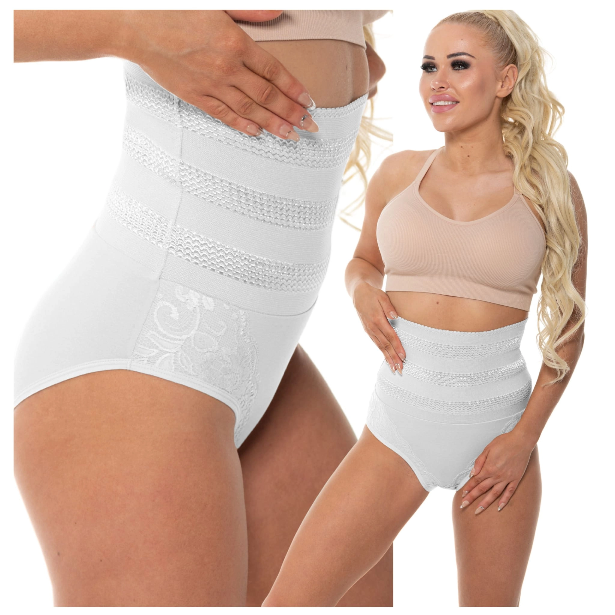 Majtki z Wysokim Stanem Wyszczuplające Bruch z Koronką Białe