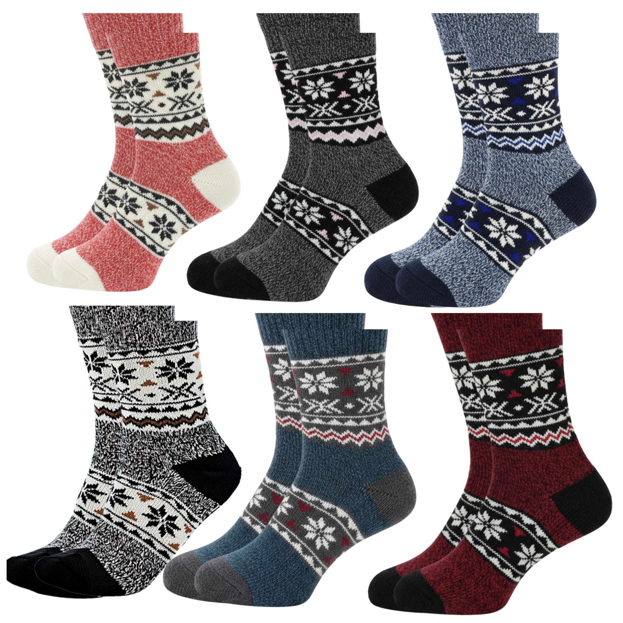 Grube, ciepłe skarpety wełniane z norweskim wzorem w praktycznym 6-paku. Idealne na zimę – do domu, na spacer i wyjazdy.