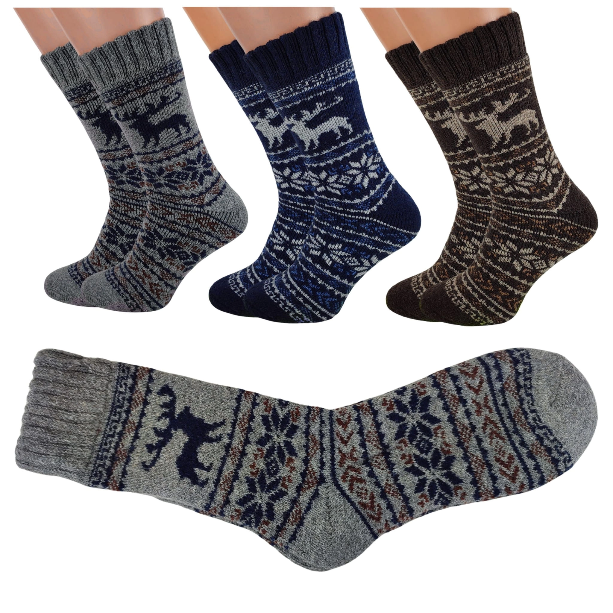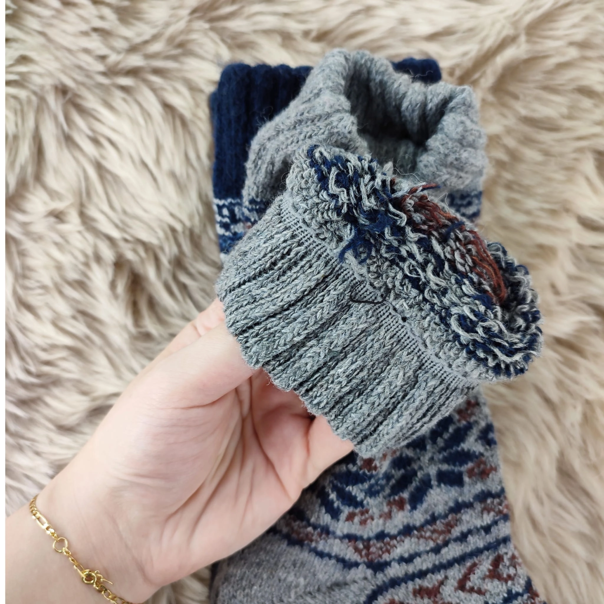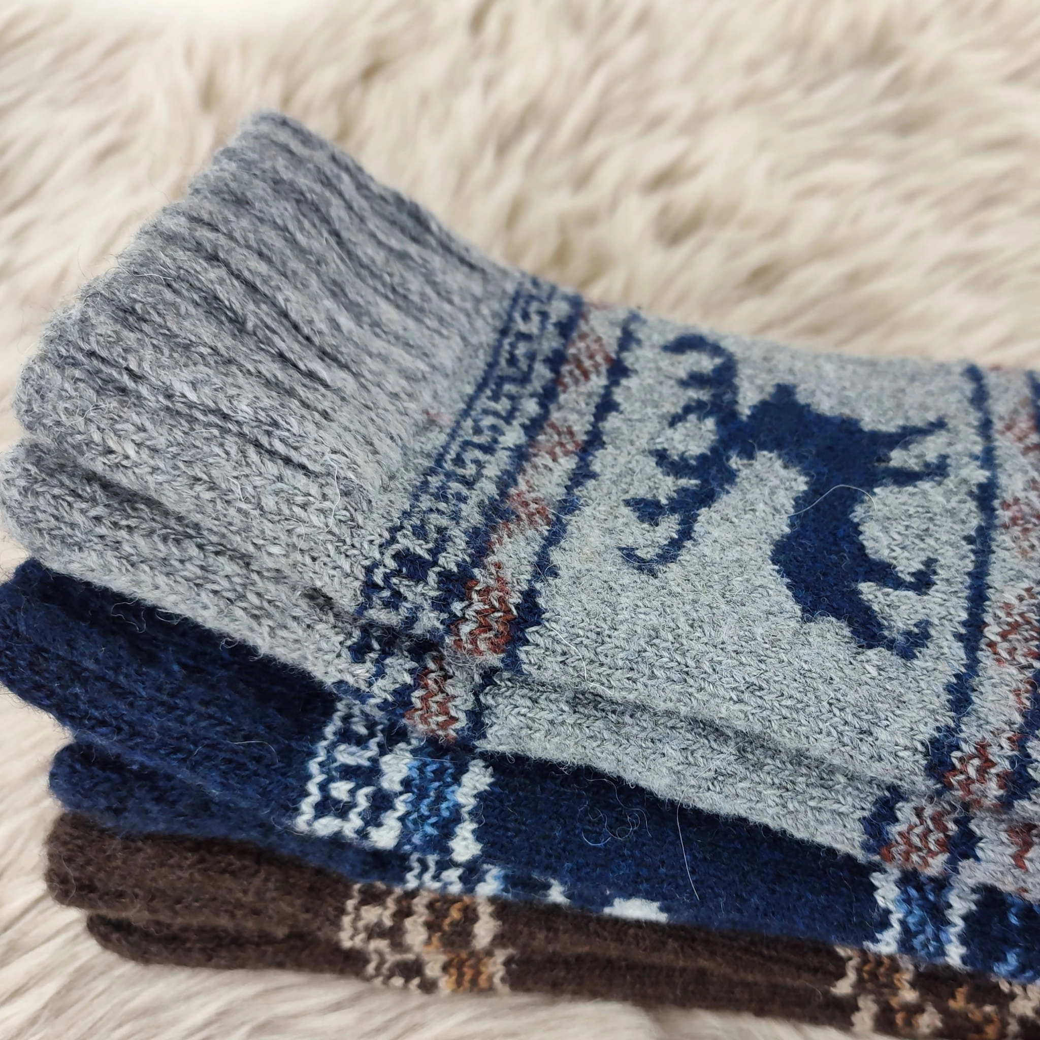 Ciepłe skarpety z alpaki wykonane z grubej dzianiny z zimowym wzorem. Bezuciskowe, elastyczne i wyjątkowo komfortowe – idealne na prezent lub zimowe dni.