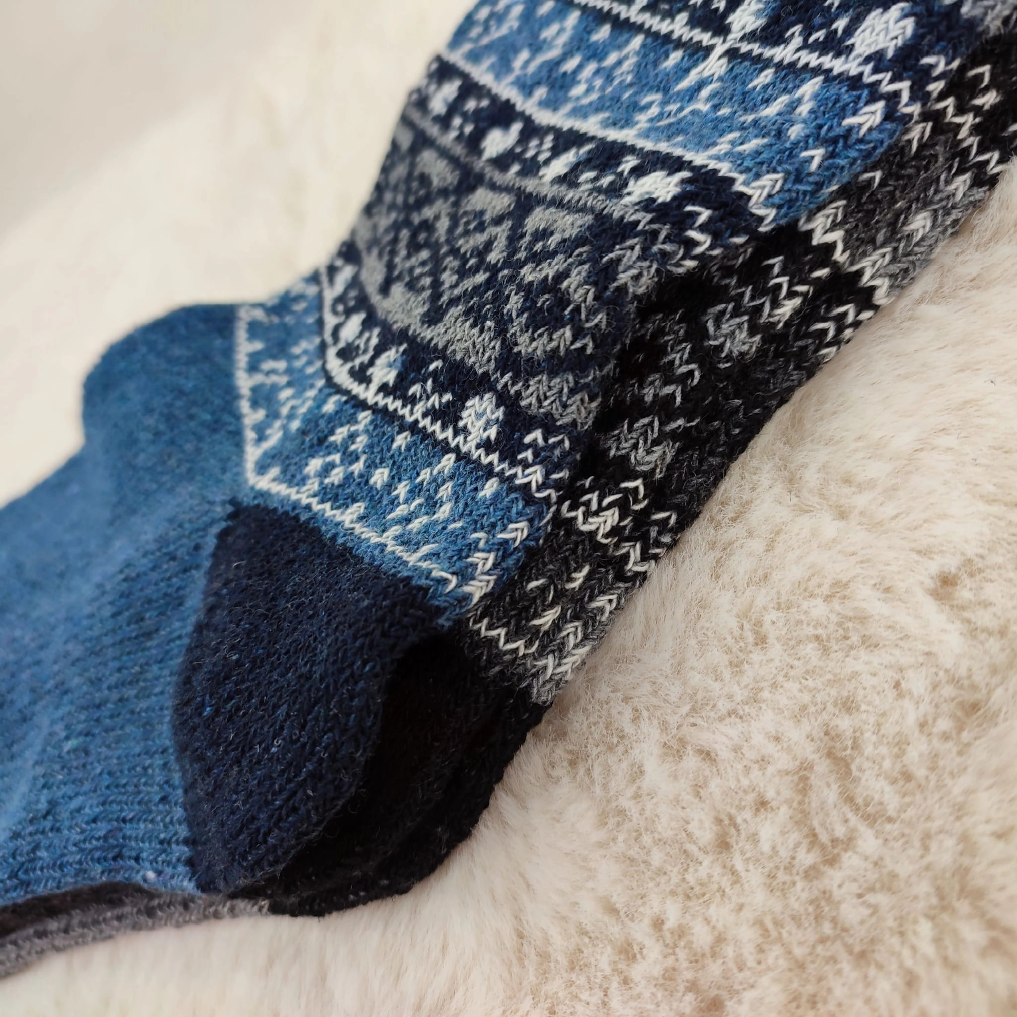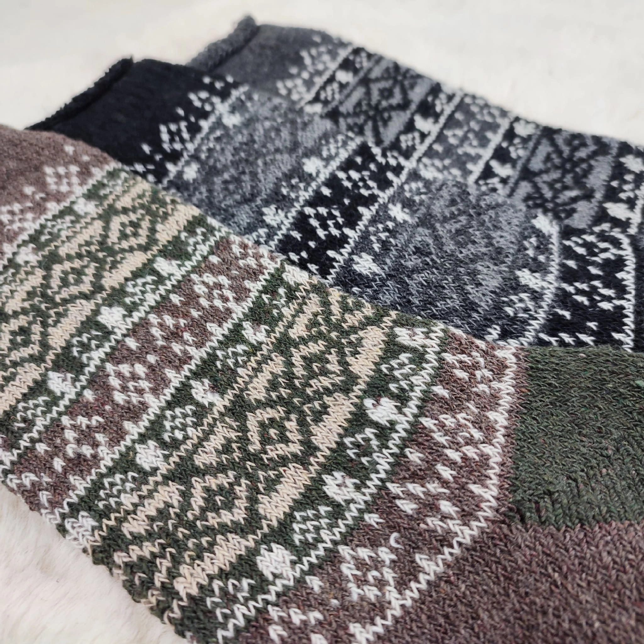 Wzory norweskie i neutralne barwy sprawiają, że skarpety pasują zarówno do męskich, jak i damskich stylizacji.