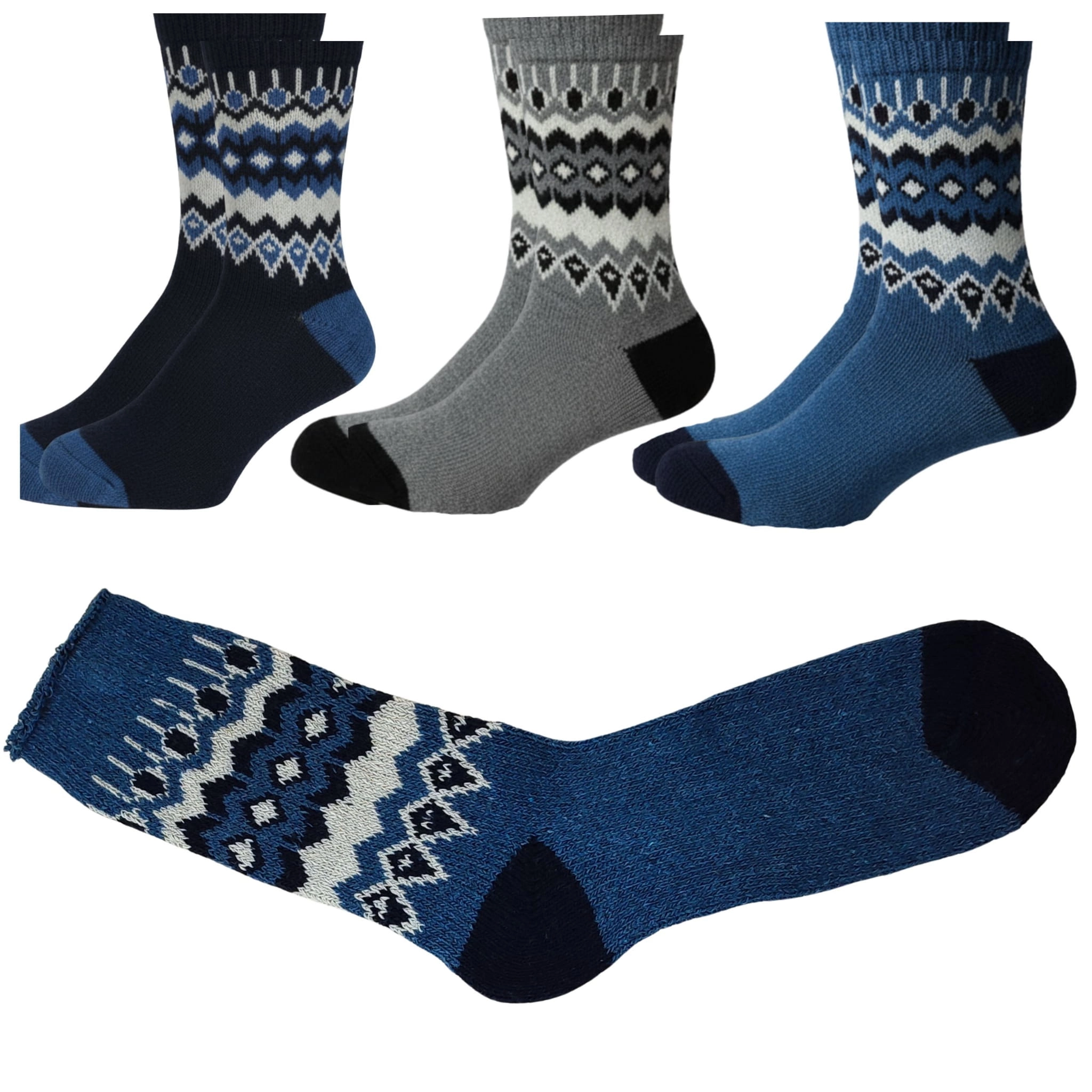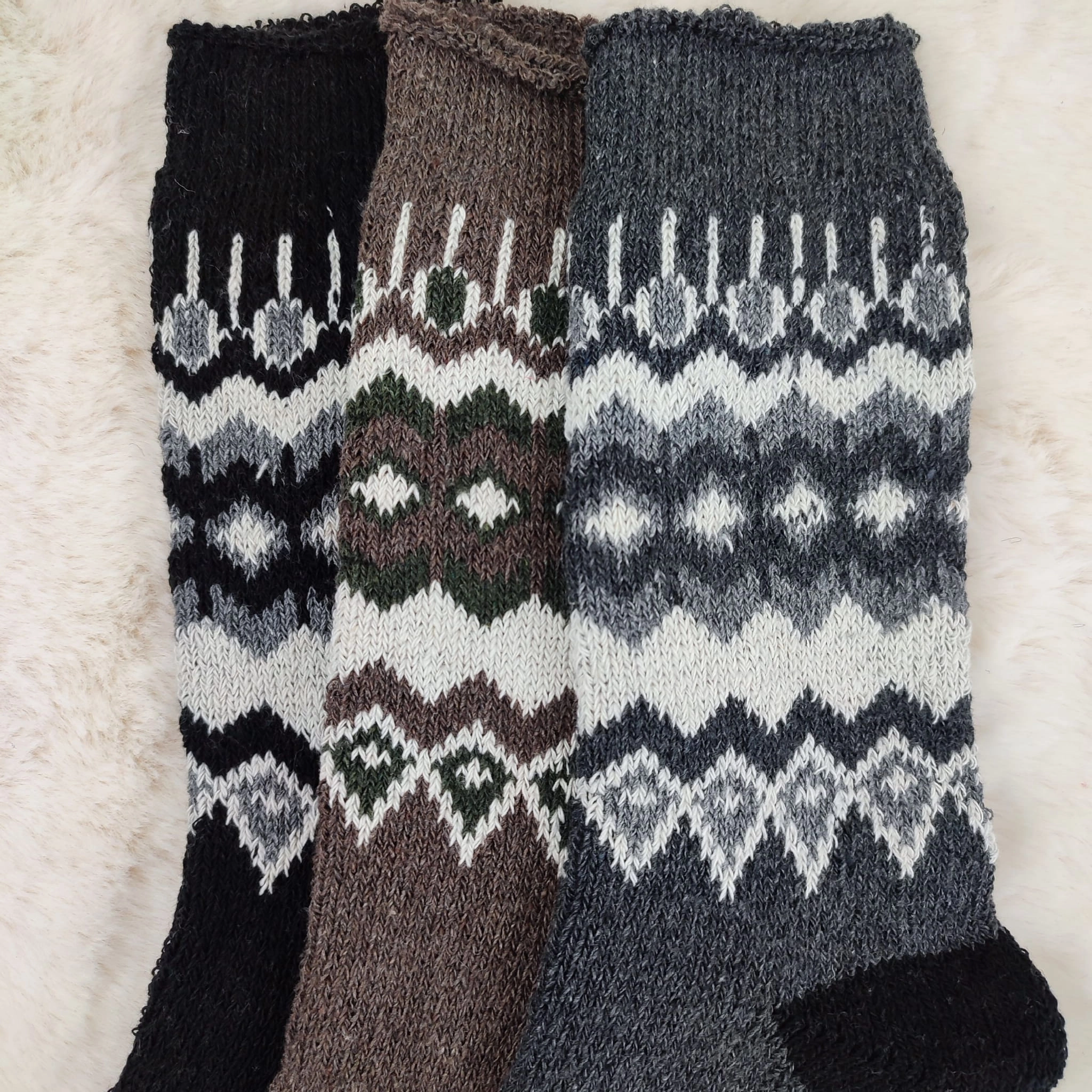 Stylowe i ciepłe skarpety wełniane z norweskim wzorem dostępne w praktycznym 3-paku. Idealne na zimę – 100% naturalnej wełny, komfort i trwałość.