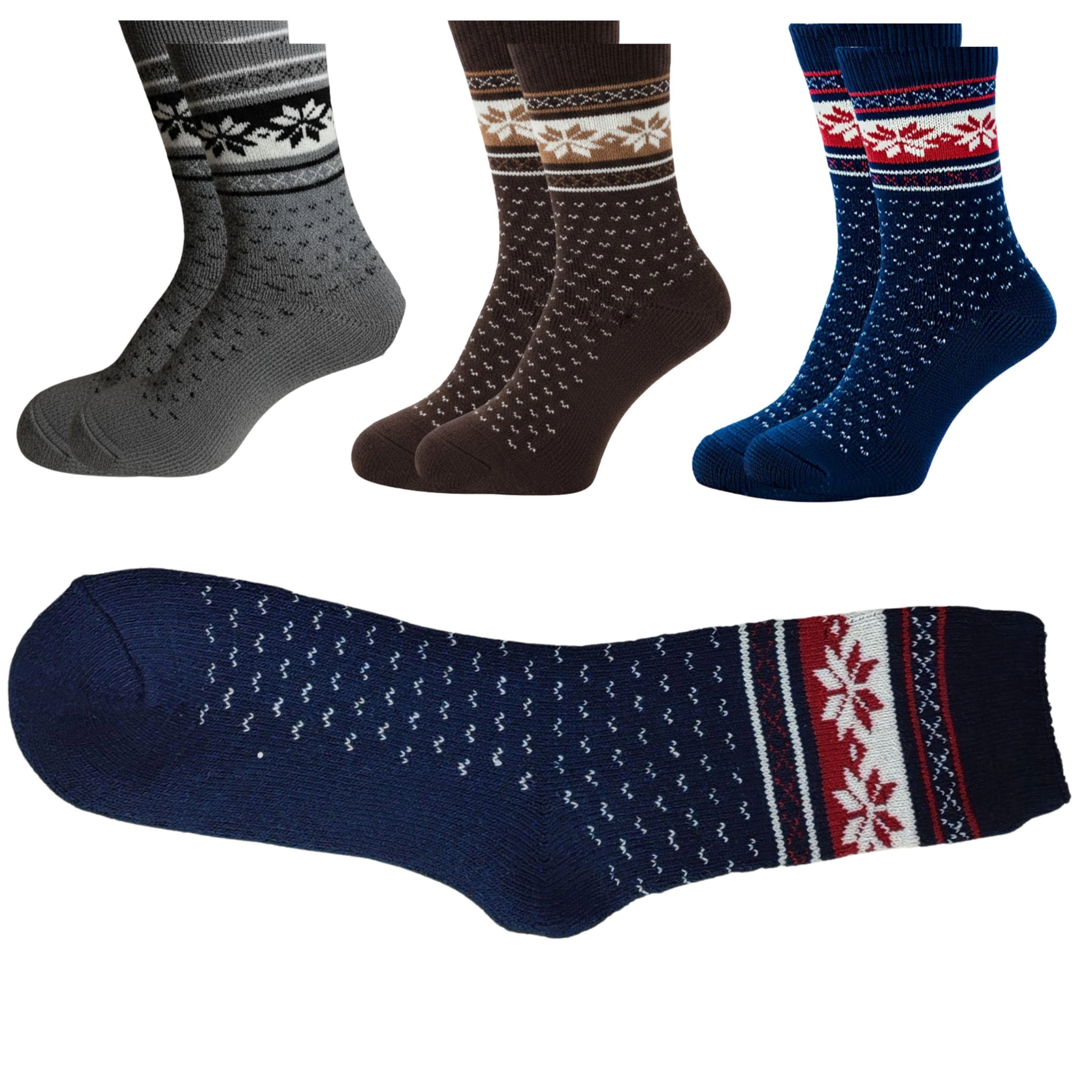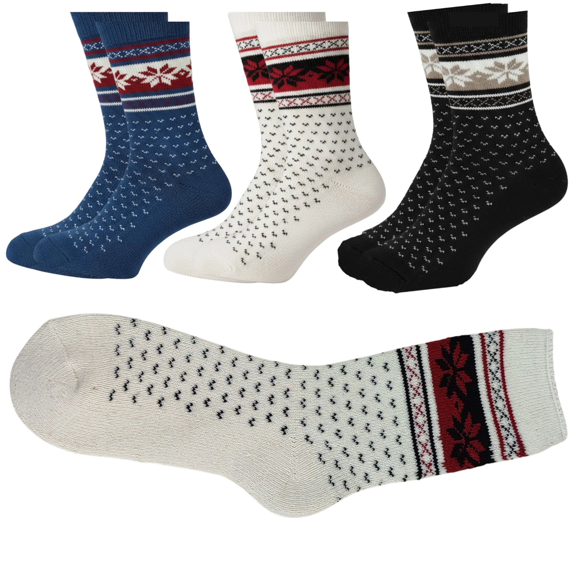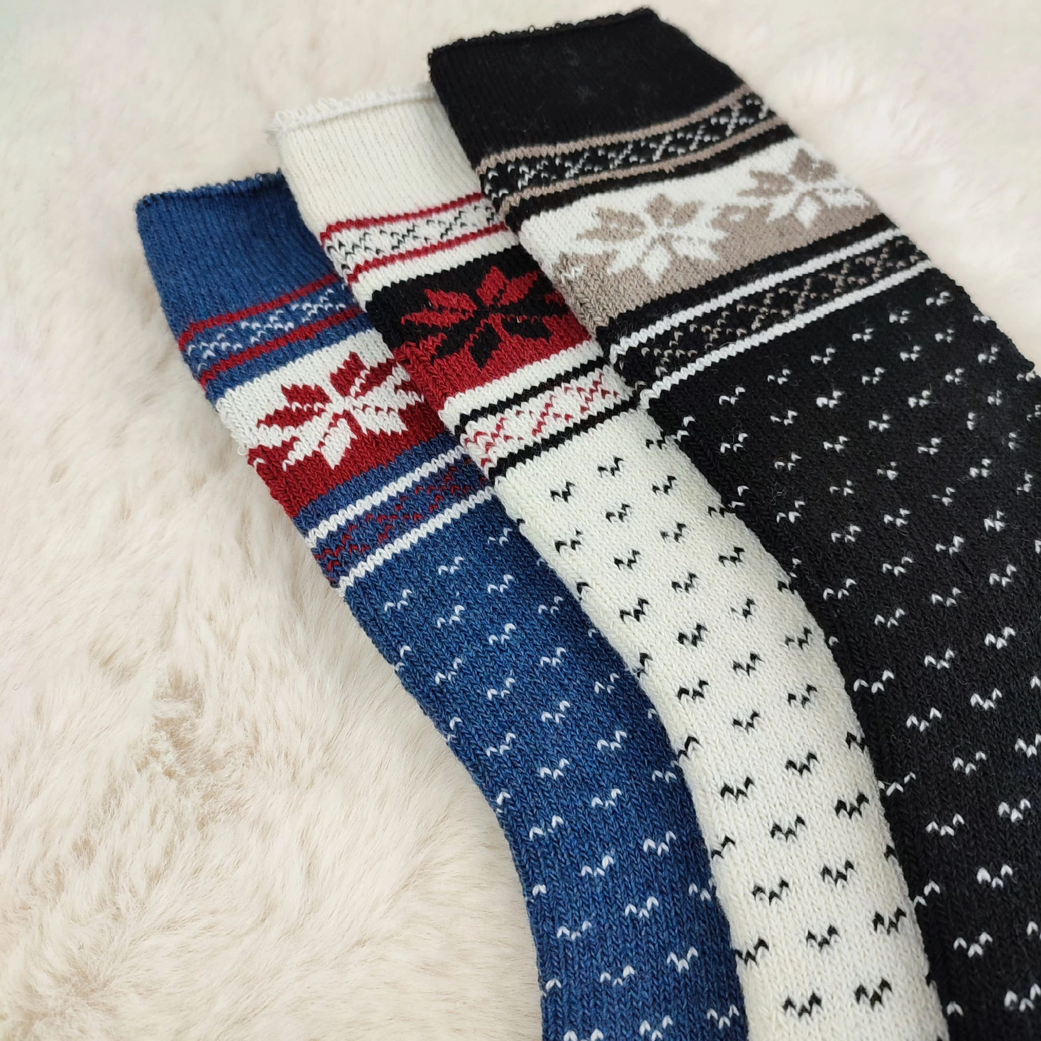 Ciepłe skarpety z naturalnej wełny alpaki zapewniają doskonałą ochronę przed zimnem i wyjątkowy komfort noszenia. Stylowy zimowy wzór i dwa zestawy kolorystyczne sprawiają, że to idealny wybór na chłodne dni.