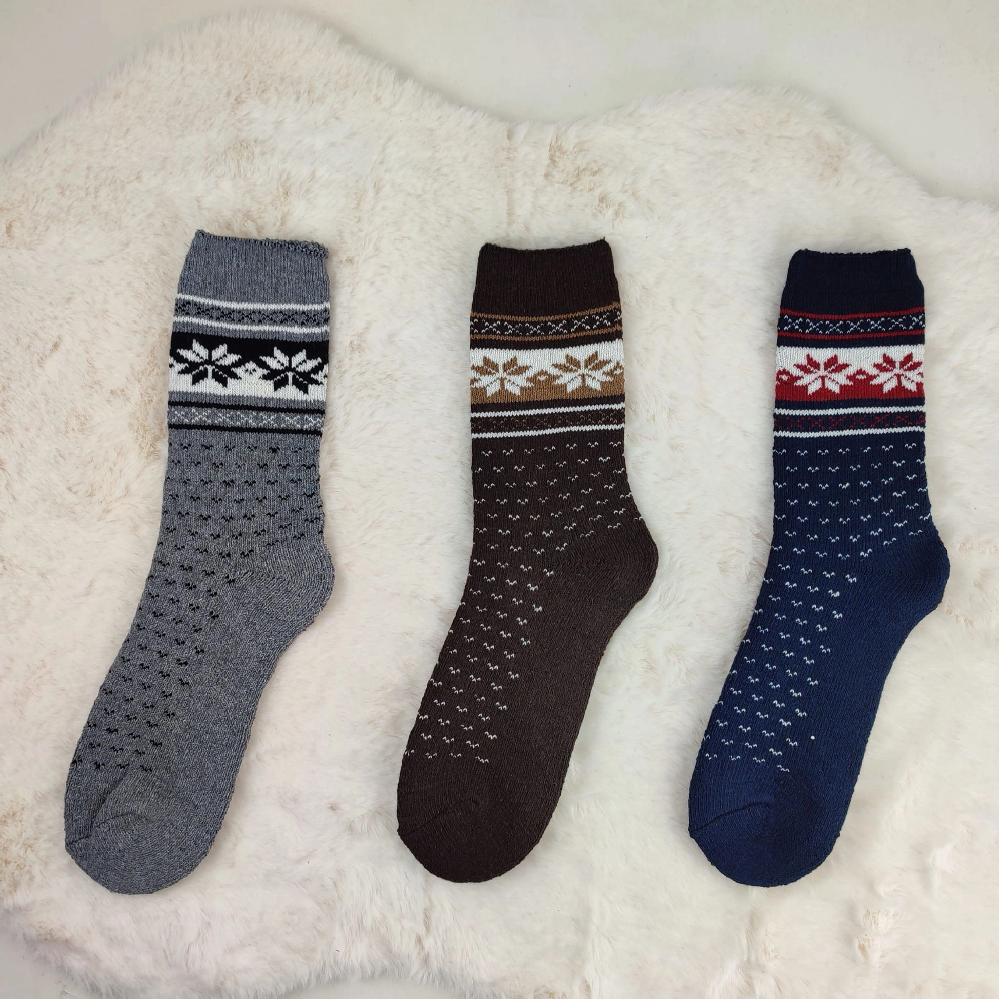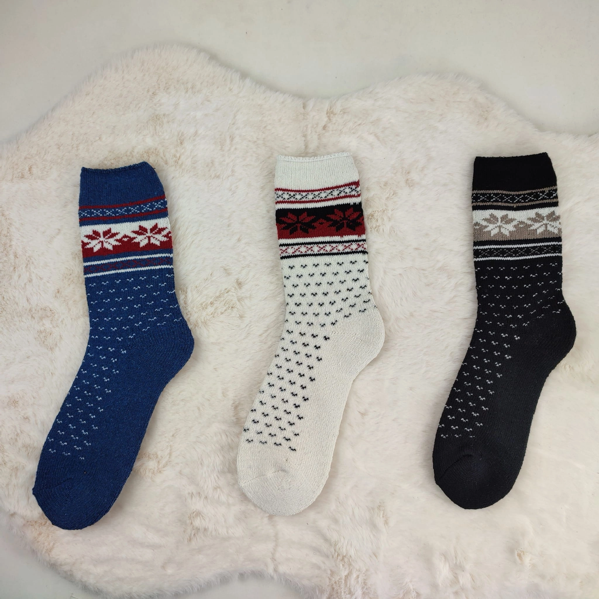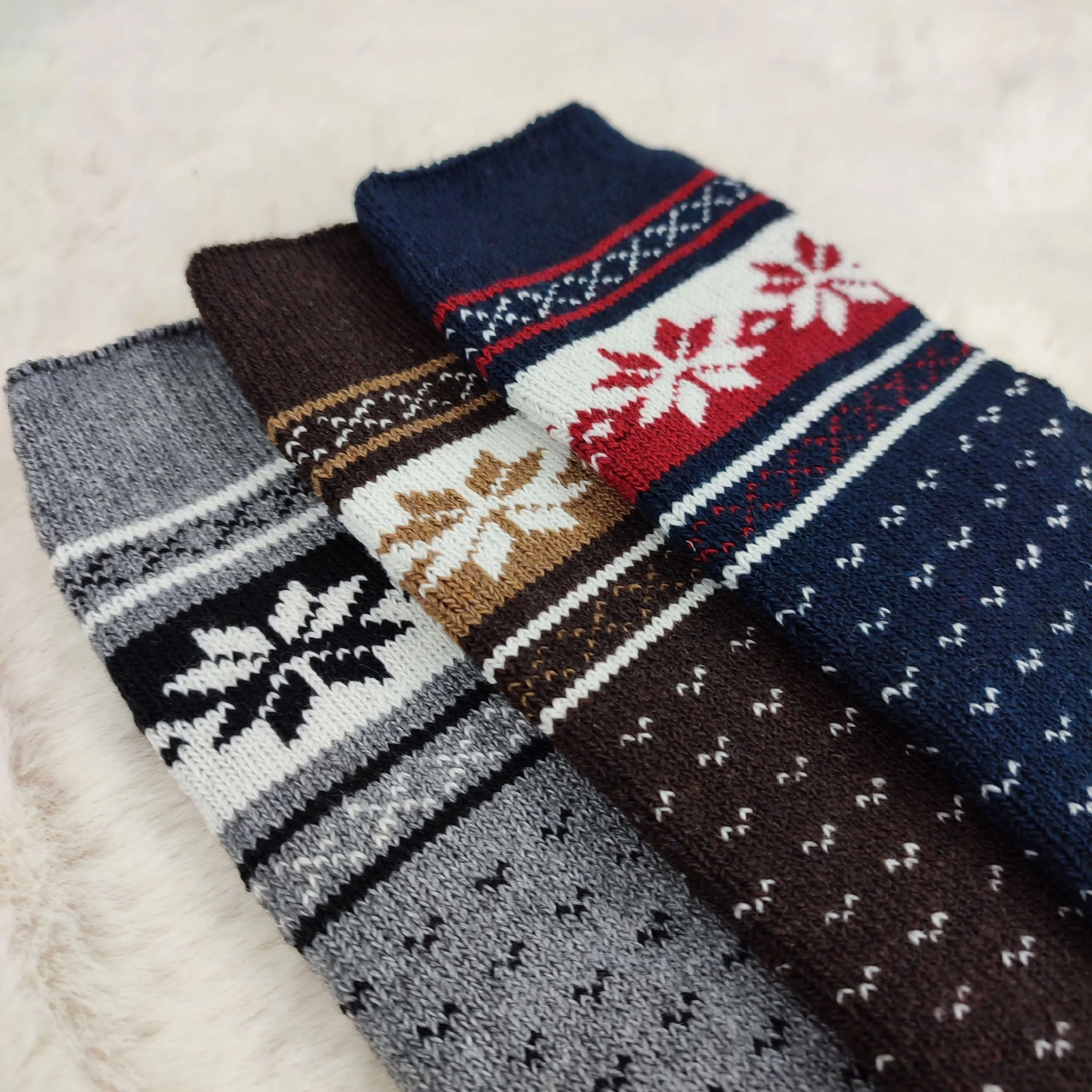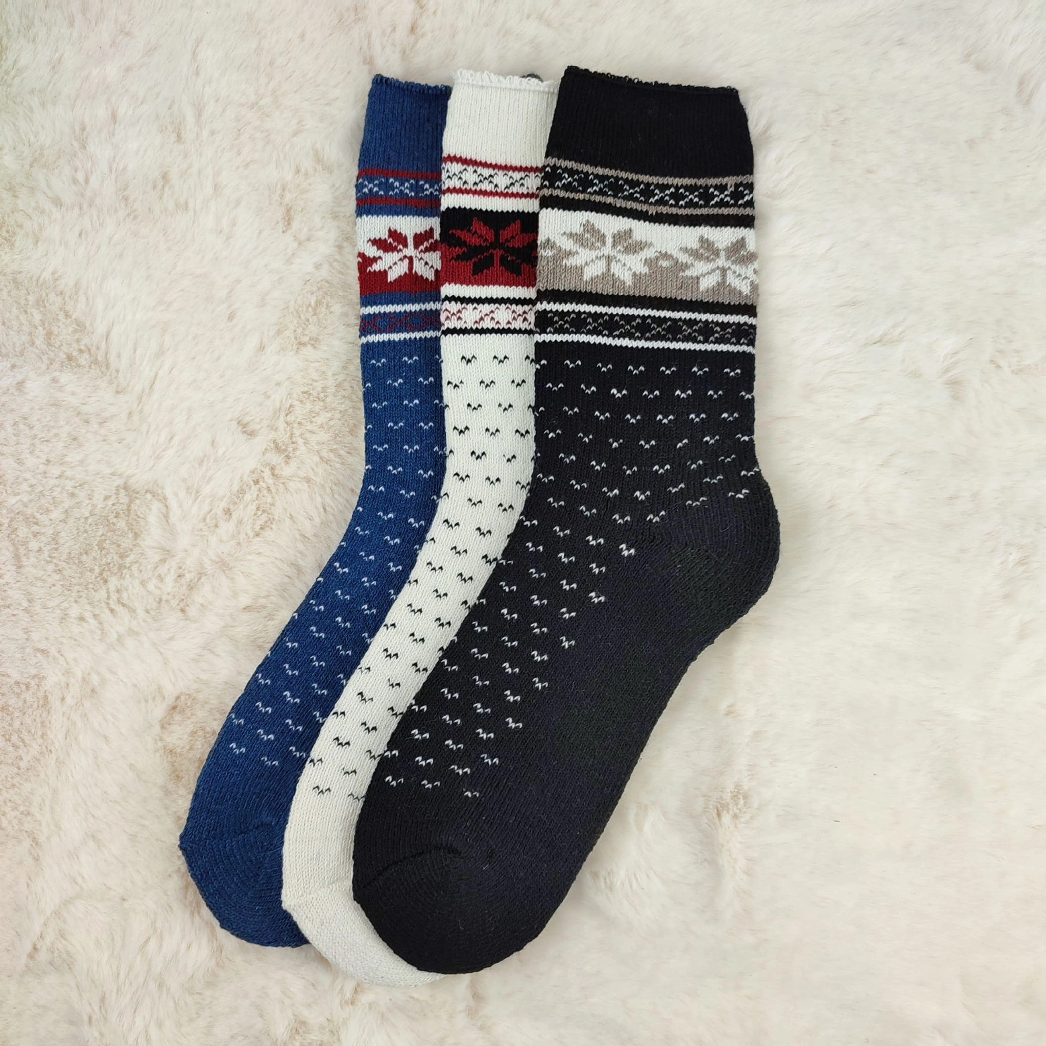Ciepłe skarpety z naturalnej wełny alpaki zapewniają doskonałą ochronę przed zimnem i wyjątkowy komfort noszenia. Stylowy zimowy wzór i dwa zestawy kolorystyczne sprawiają, że to idealny wybór na chłodne dni.