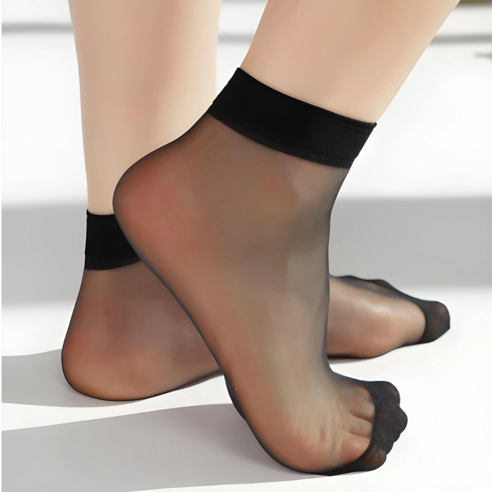 10PAR Czarne transparentne skarpety rajstopowe damskie z wzmocnionymi palcami.