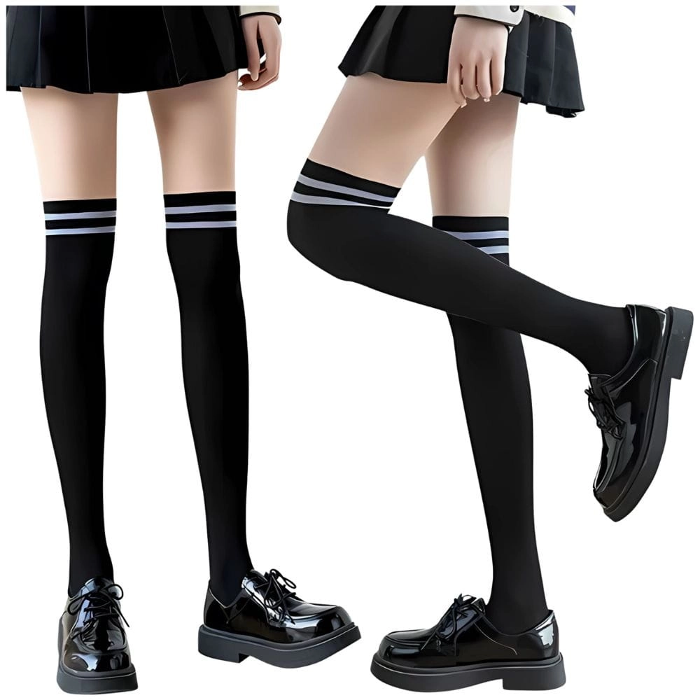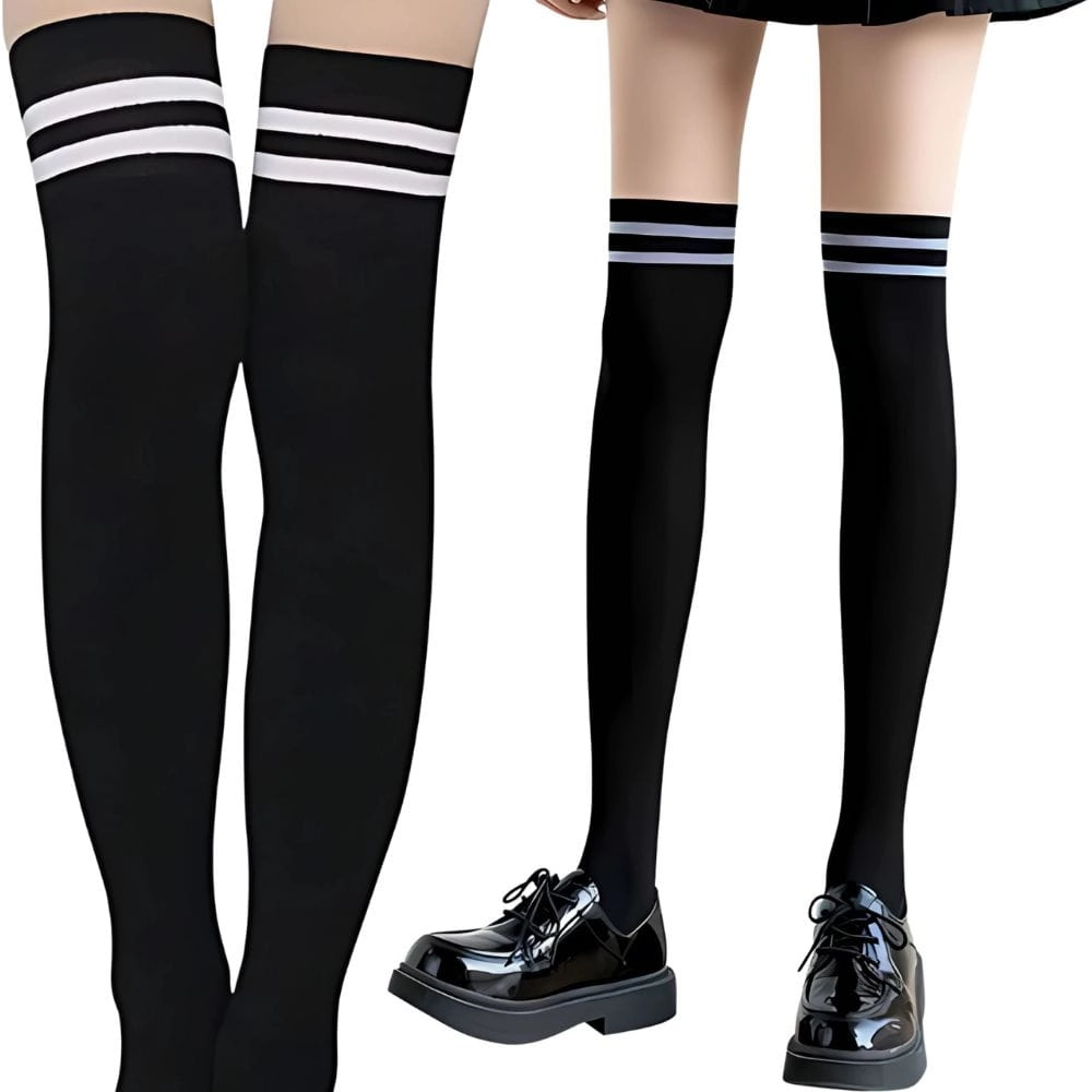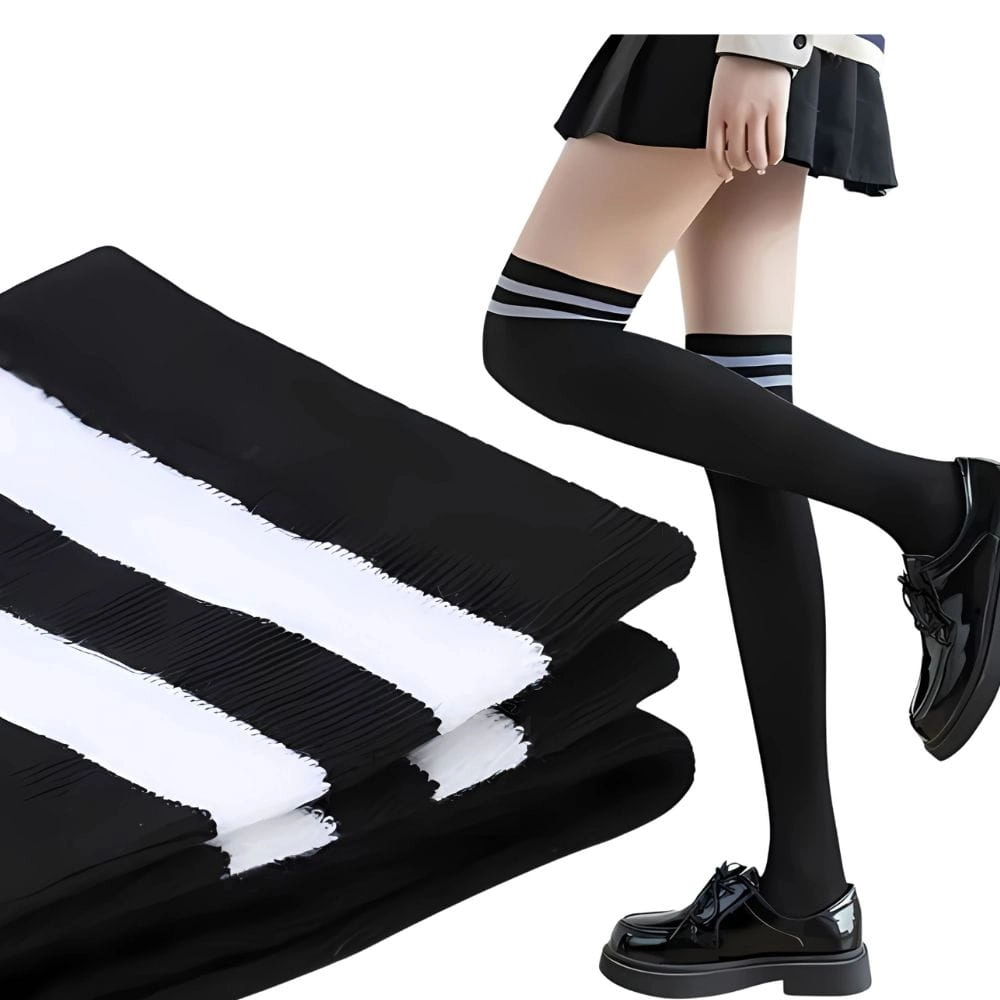 Stylowe zakolanówki damskie czarne z paskami elastyczne to doskonały wybór zarówno do codziennych, jak i bardziej eleganckich stylizacji. Wykonane z wysokiej jakości elastycznego materiału, zapewniają doskonałe dopasowanie do nóg, gwarantując komfort noszenia przez cały dzień. Górna część zakolanówek zdobiona jest dwoma kontrastowymi paskami, które nadają im nowoczesny, sportowy wygląd. Idealne do krótkich spódniczek, szortów oraz obuwia sportowego i eleganckiego. Wybierz te zakolanówki, aby podkreślić swoją sylwetkę i dodać stylu każdej stylizacji.